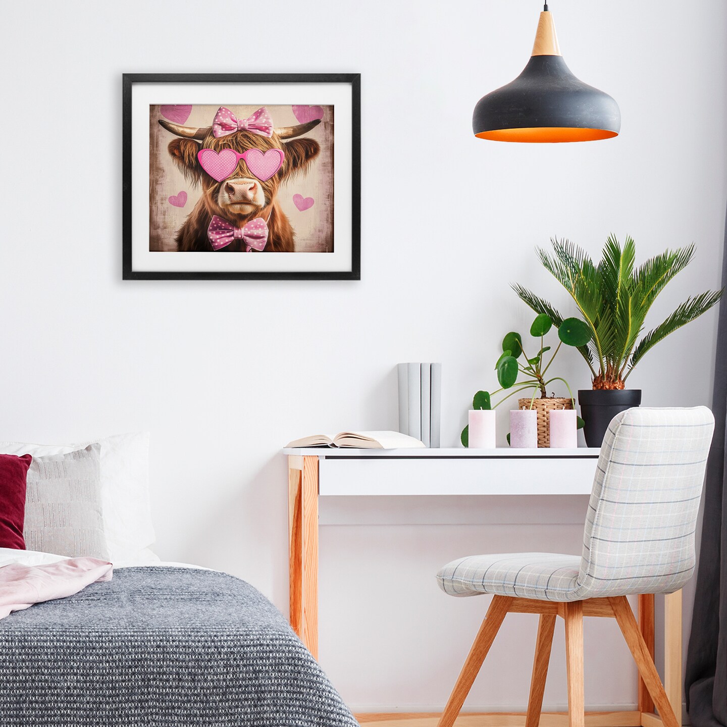Stupell Industries Cute Cattle Pink Hearts Framed Print Under Glass, design by Shawna Stewart