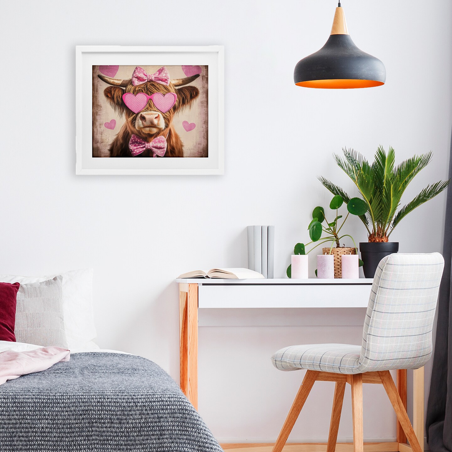 Stupell Industries Cute Cattle Pink Hearts Framed Print Under Glass, design by Shawna Stewart