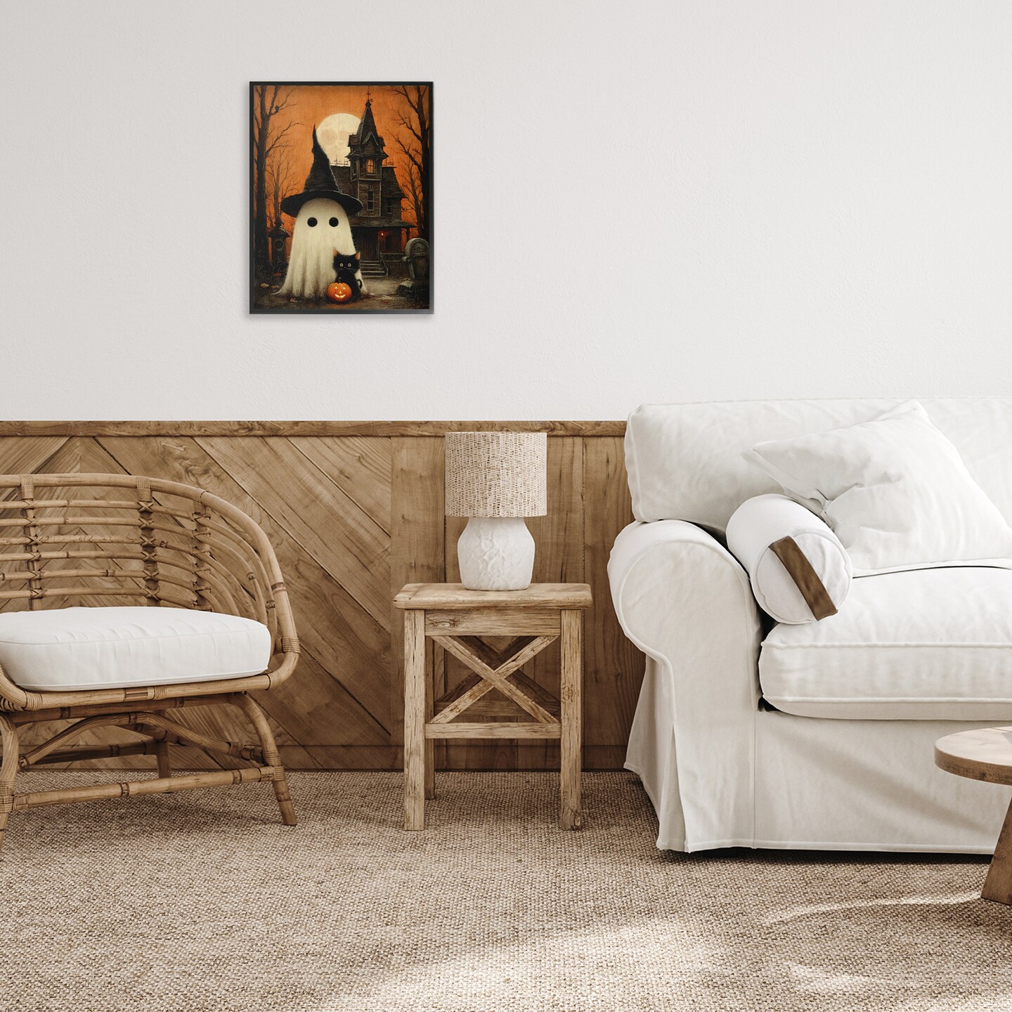 Stupell Industries Cute Ghost & Haunted House Framed Giclee, design by Arlington Prints