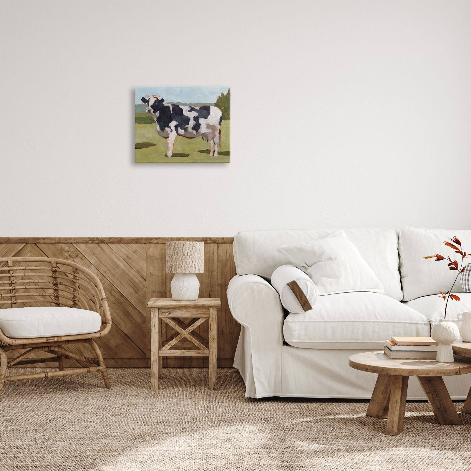 Stupell Industries Dairy Farm Cow Grazing Country Cattle Traditional Painting Canvas Wall Art
