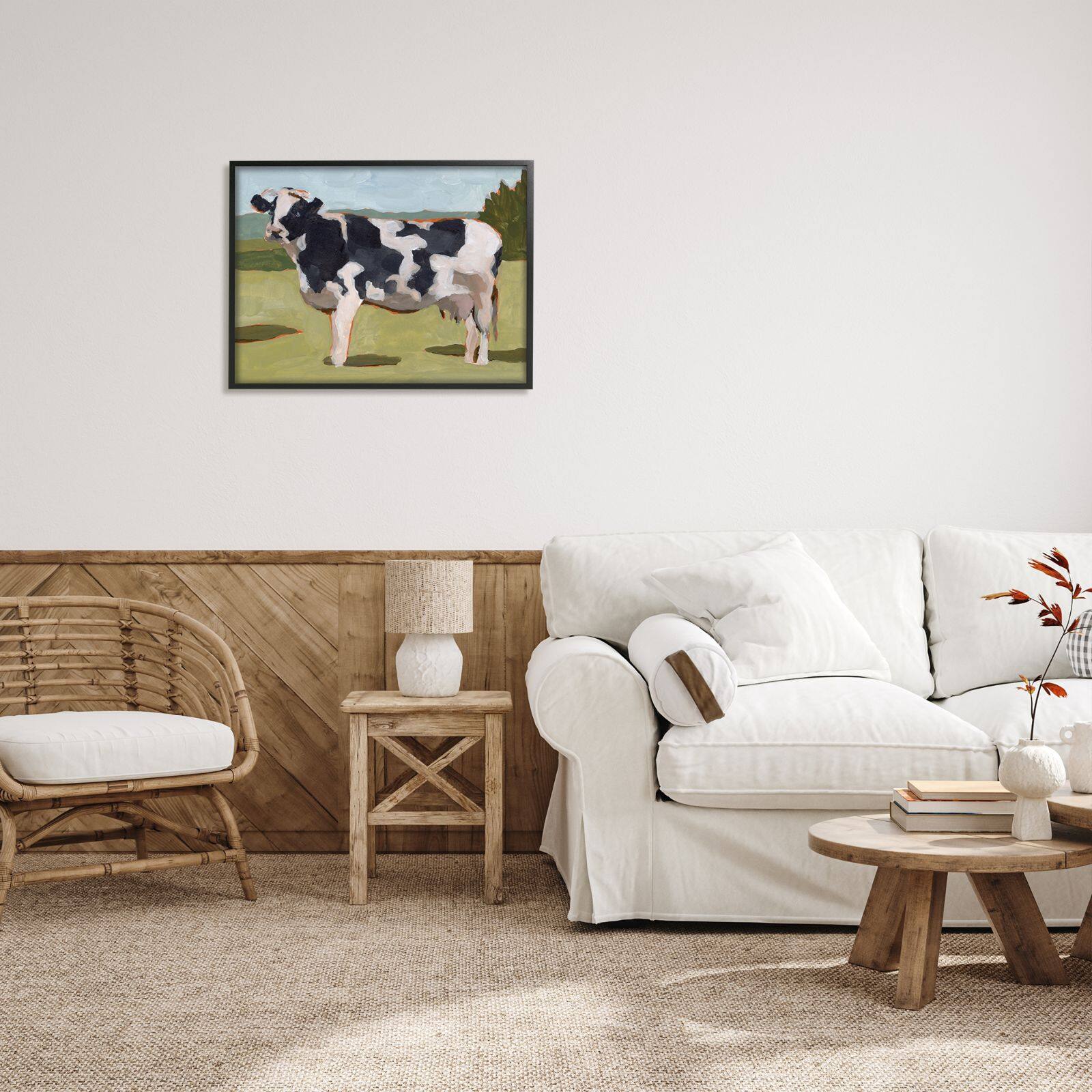 Stupell Industries Dairy Farm Cow Grazing Country Cattle Traditional Painting Framed Wall Art