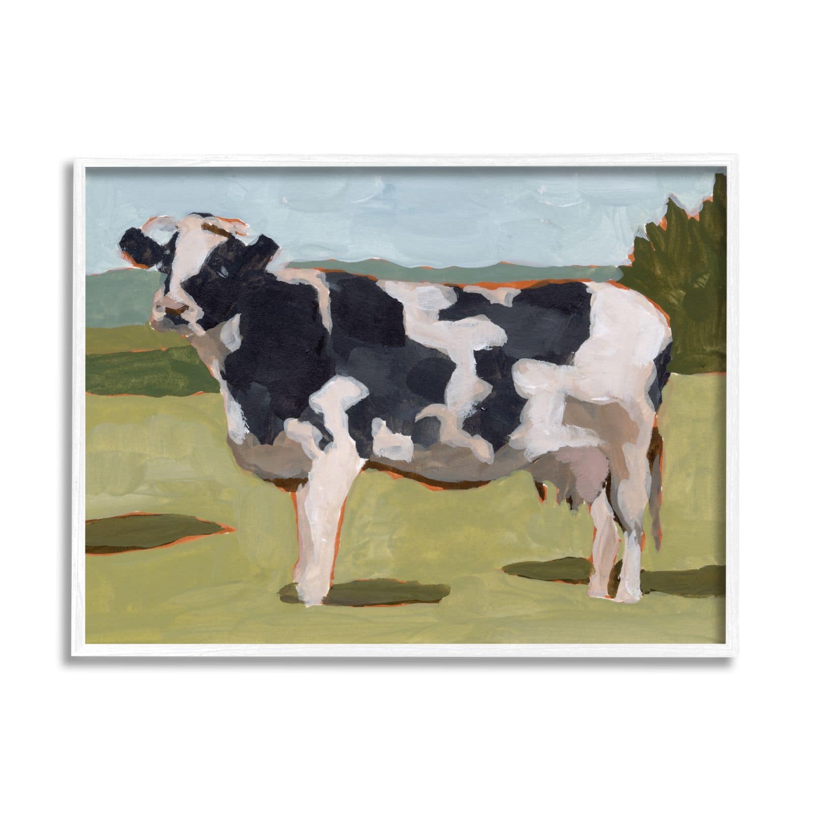 Stupell Industries Dairy Farm Cow Grazing Country Cattle Traditional Painting Framed Wall Art