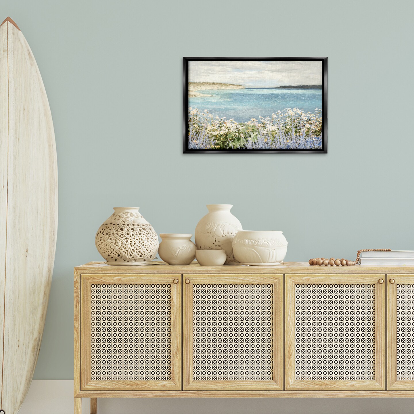 Stupell Industries Daisy Field over Sea Floater Framed Canvas Wall Art Design by Amber Sterling