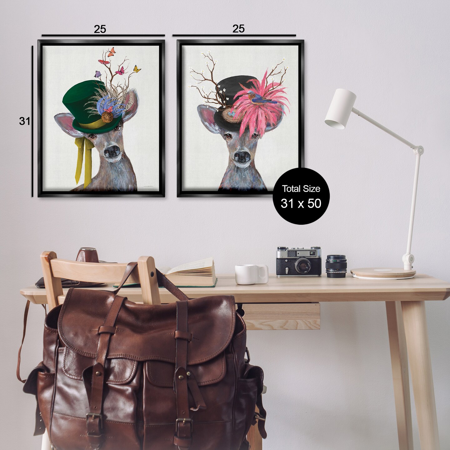 Stupell Industries Dapper Deer Floral Top Hat 2 pc Framed Floater Canvas Wall Art Set Design by Kamdon Kreations