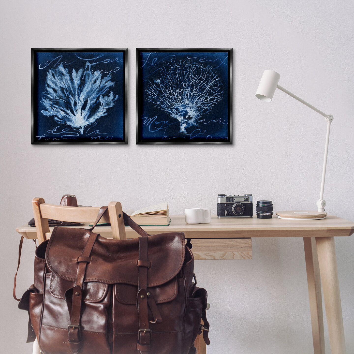 Stupell Industries Dark Blue Coral Pieces 2 pc Framed Floater Canvas Wall Art Set Design by Liz Jardine