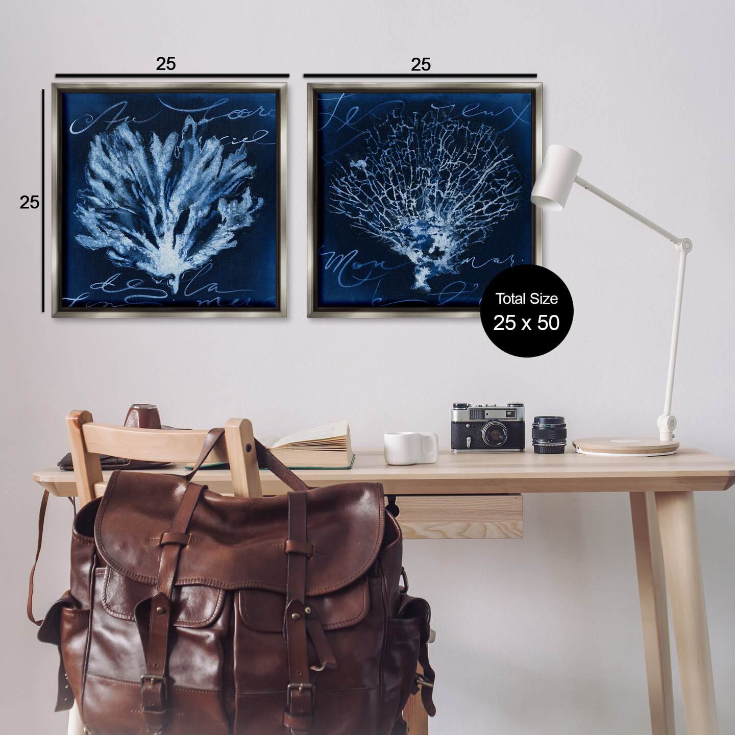 Stupell Industries Dark Blue Coral Pieces 2 pc Framed Floater Canvas Wall Art Set Design by Liz Jardine