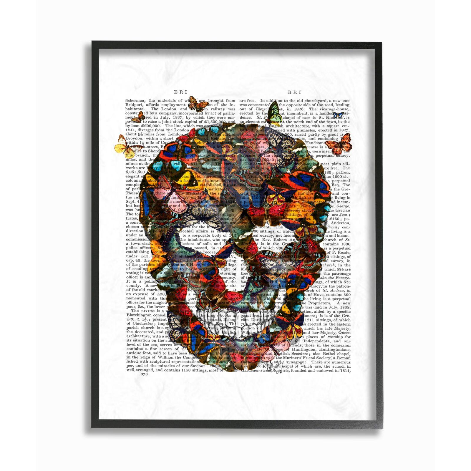 Stupell Industries Dark Rainbow Skull of Butterflies Black Framed Wall Art