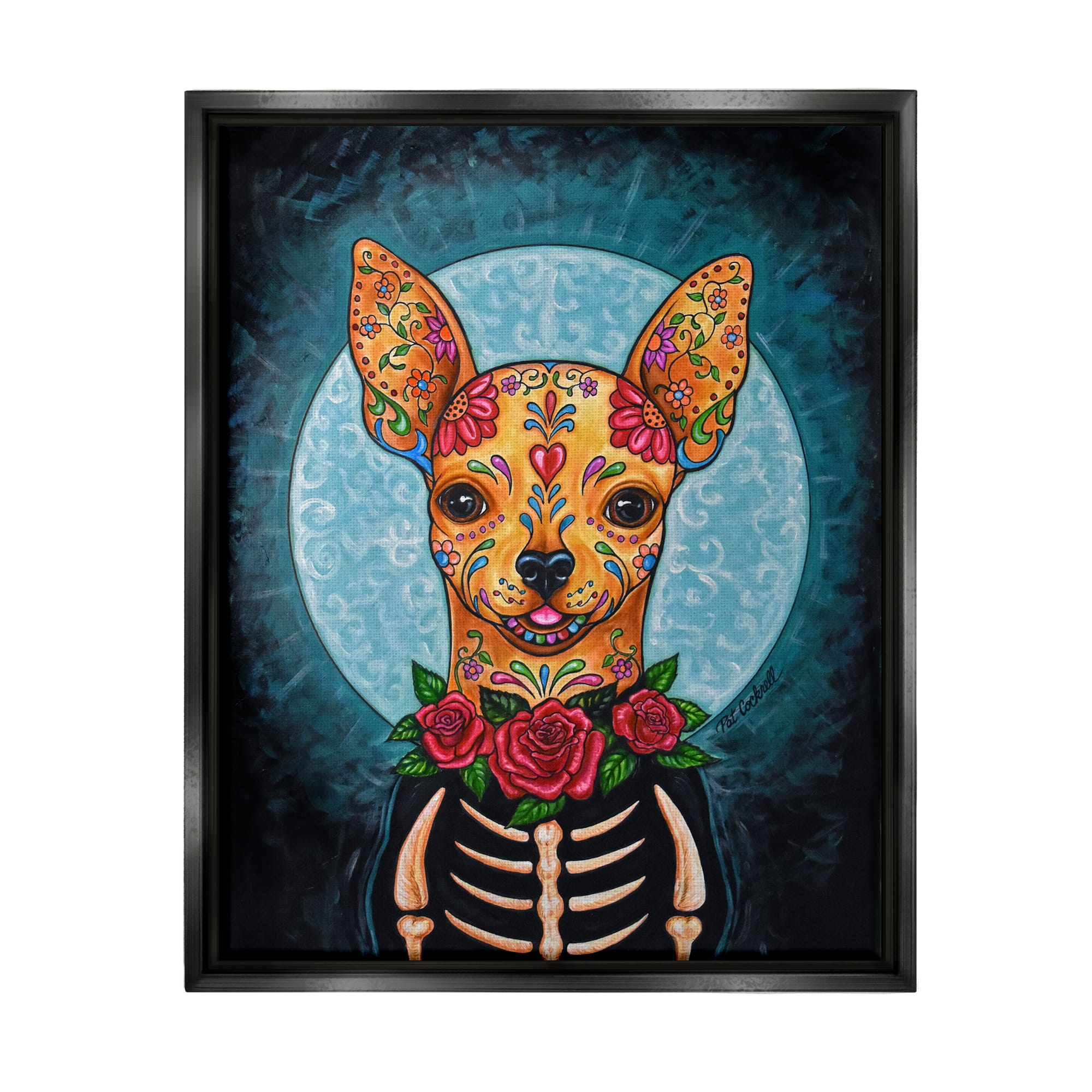 Stupell Industries Day of Dead Chihuahua Framed Floater Canvas Wall Art