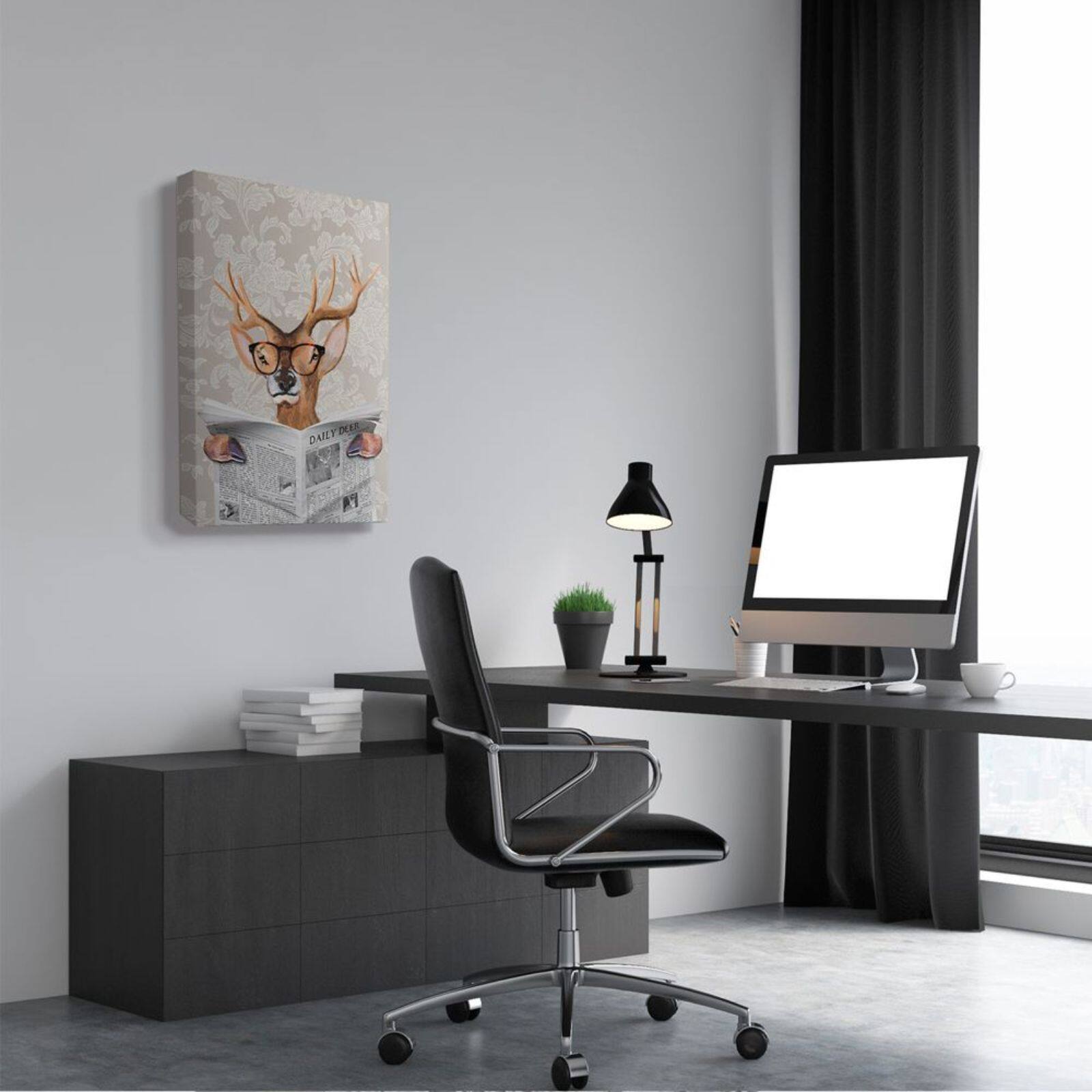 Stupell Industries Deer Reading Newspaper Canvas Wall Art