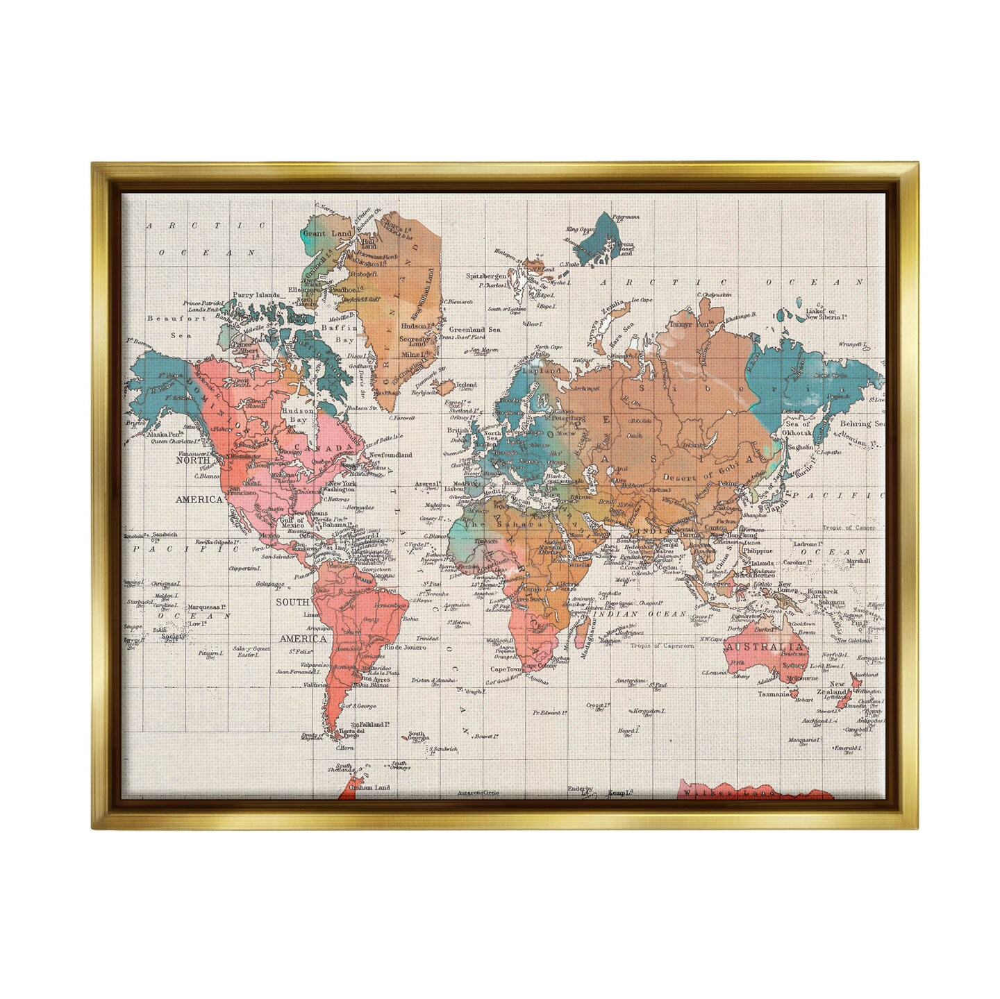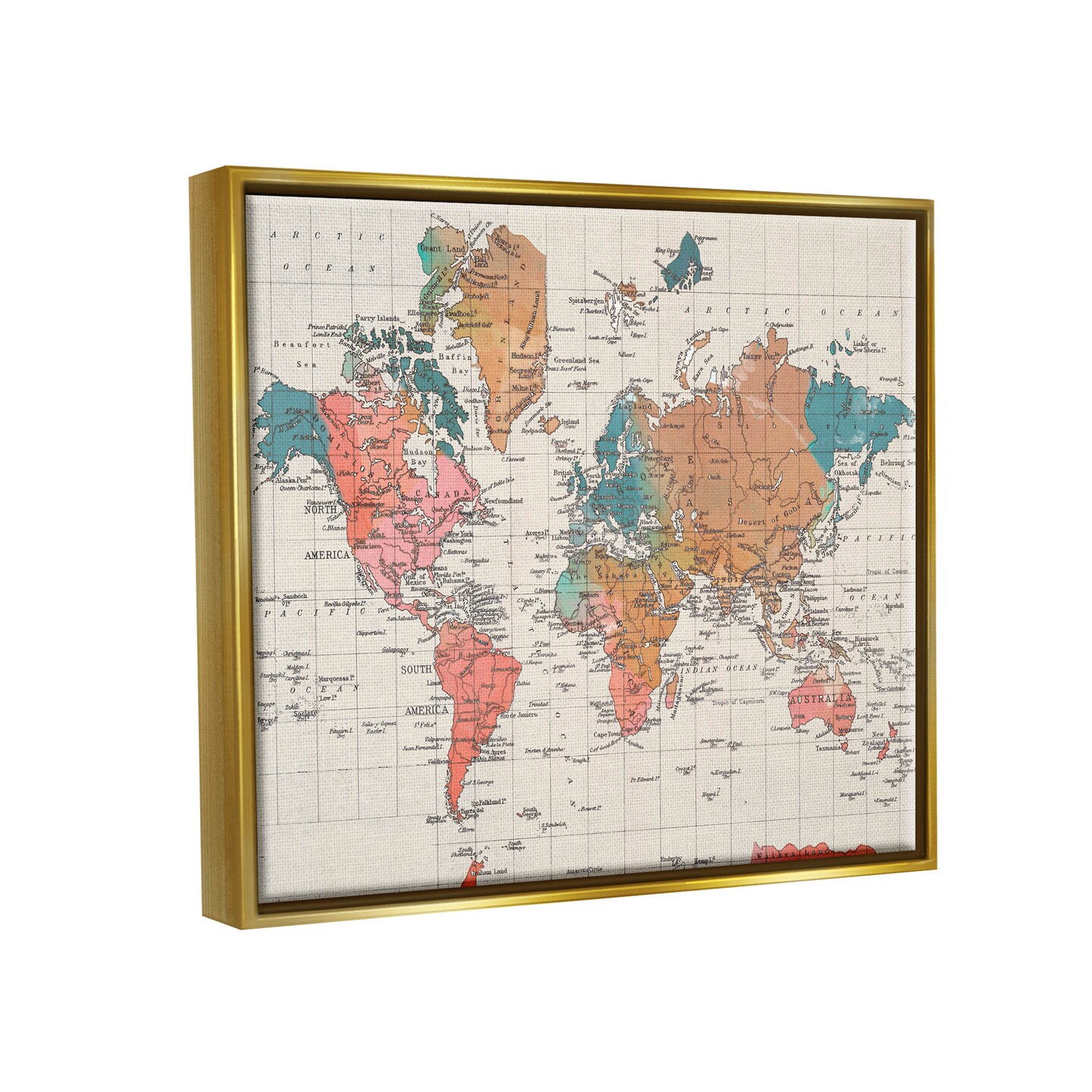 Stupell Industries Detailed Boho World Map Black Framed Floater Canvas Wall Art