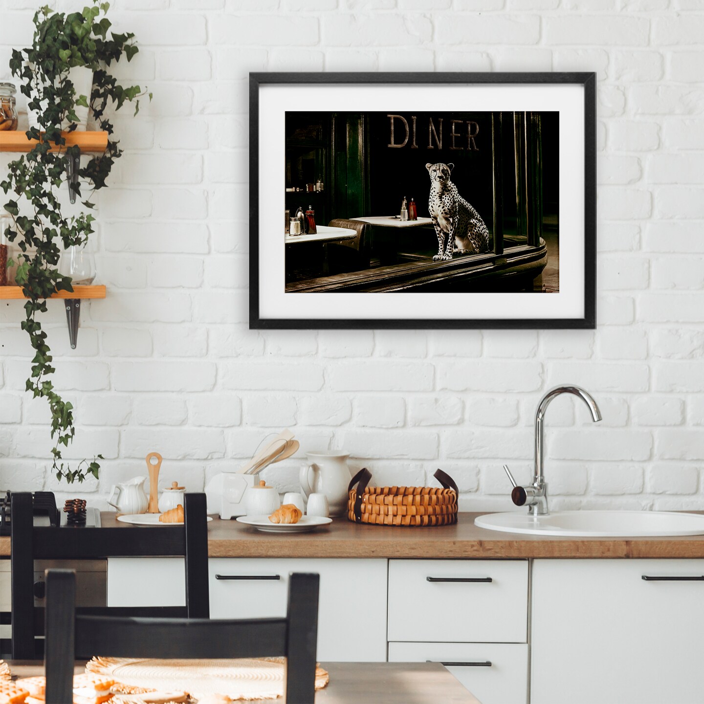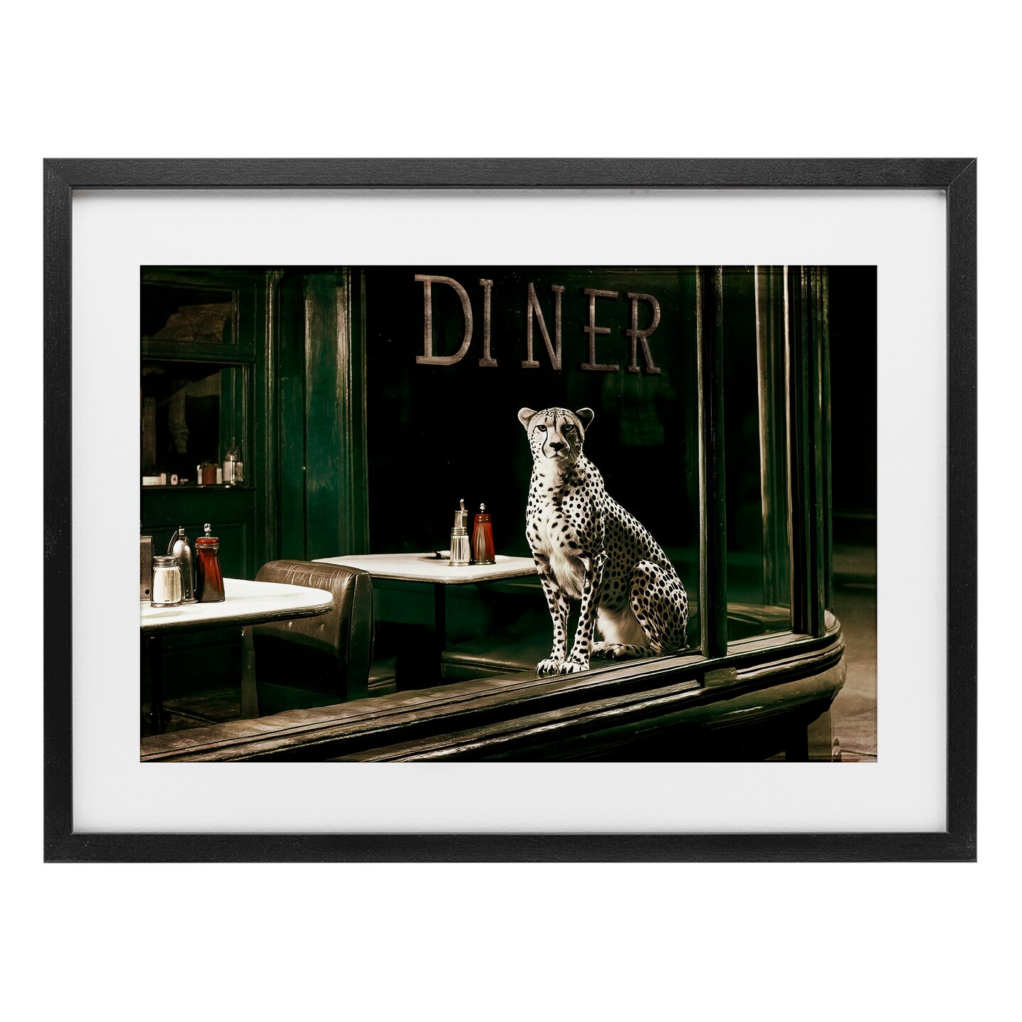 Stupell Industries Diner Sentry Leopard Framed Print Under Glass, design by Annabelle Hall