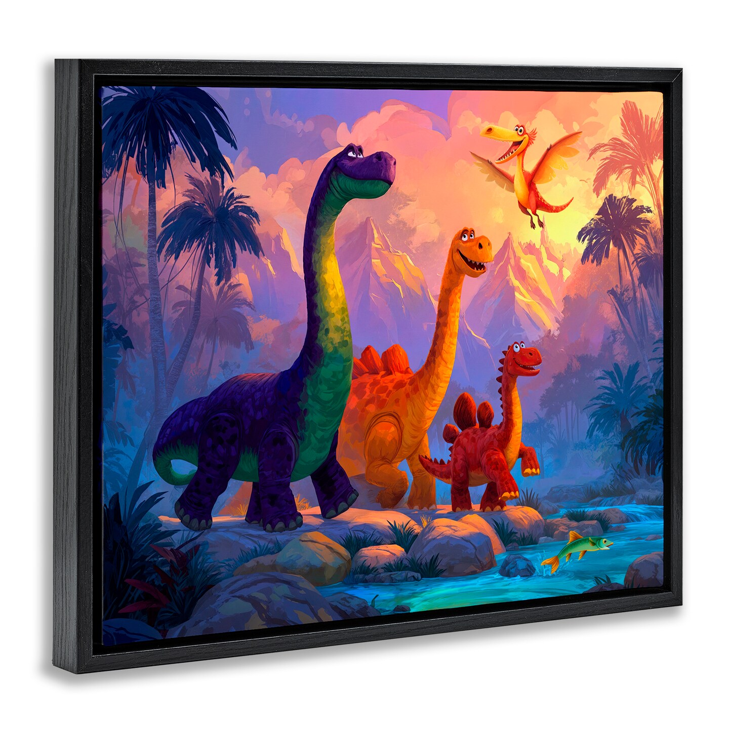 Stupell Industries Dinosaur Friends In The Jungle Floating Frame, design by Wumples