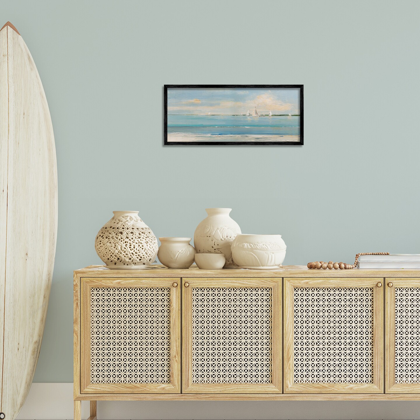 Stupell Industries Distant Painterly Sailboats Framed Giclee Wall Art Design by Sally Swatland