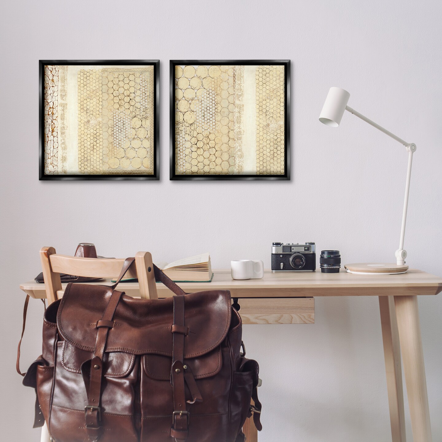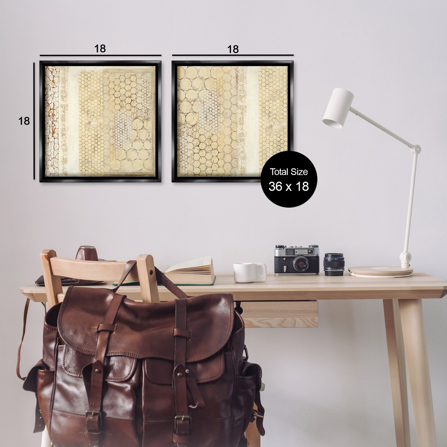 Stupell Industries Distressed Pale Yellow Circles 2 pc Framed Floater Canvas Wall Art Set Design by Laura Van Horne