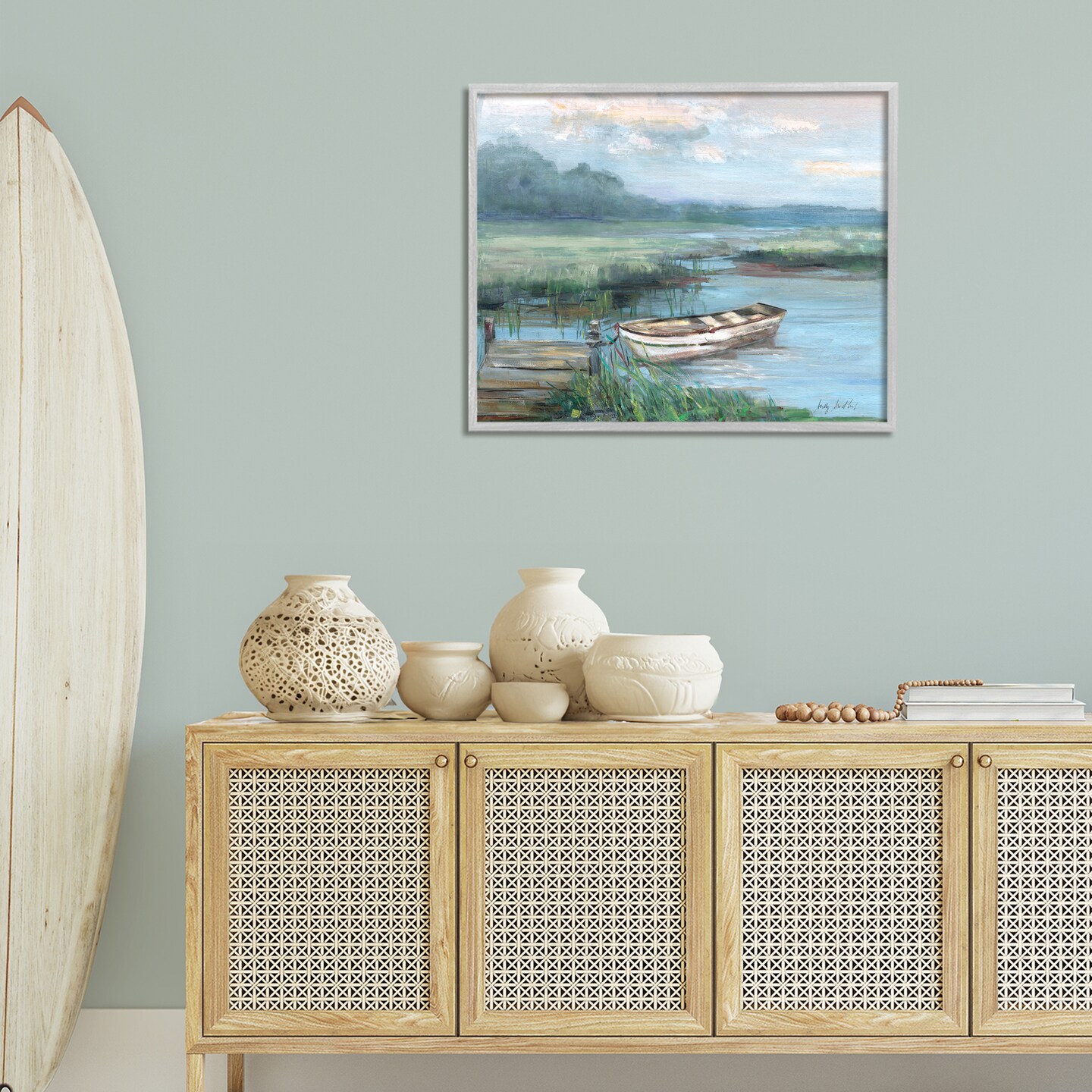 Stupell Industries Docked Rowboat at Lake's Edge Framed Giclee By Sally Swatland