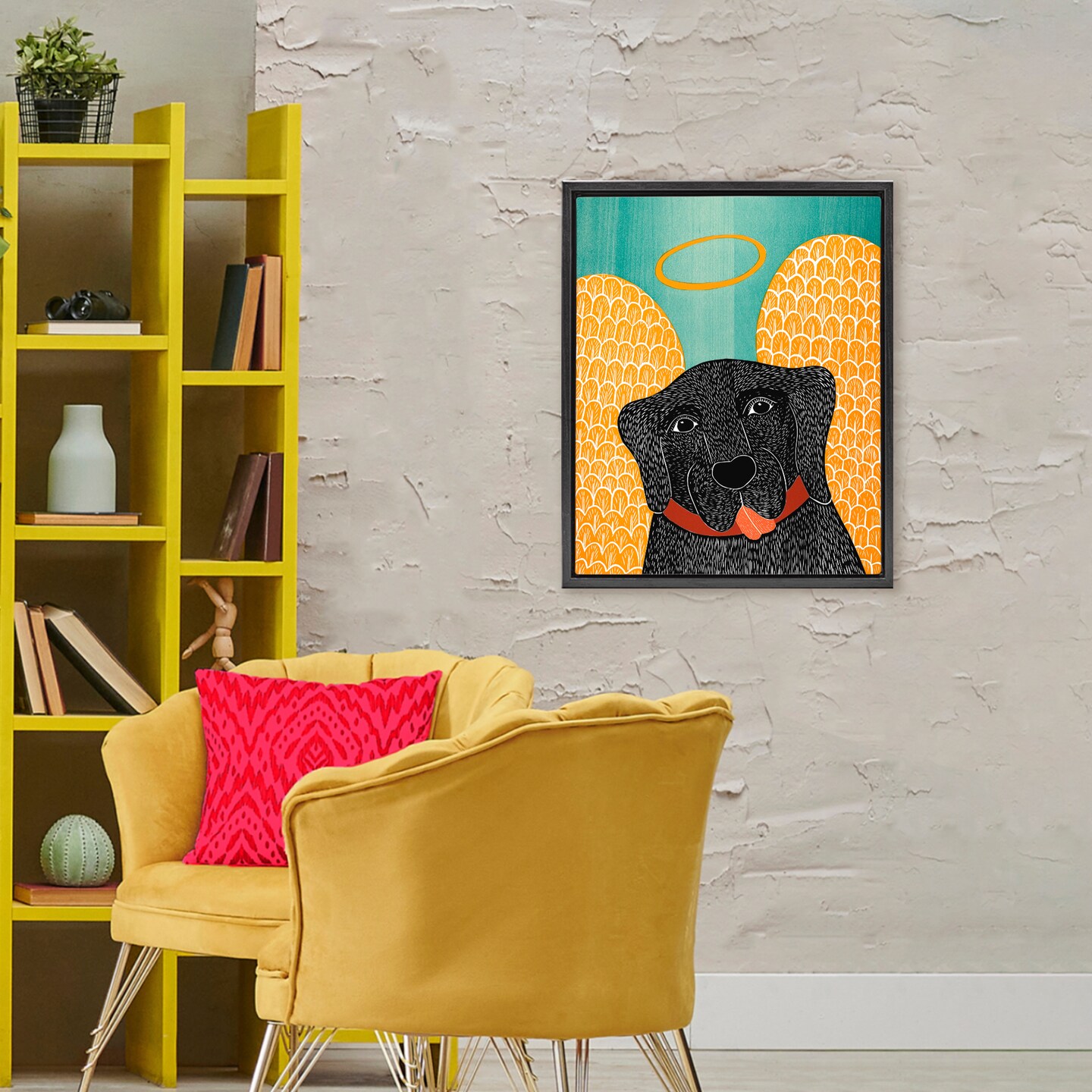 Stupell Industries Dog Angel with Yellow Wings Floating Frame, design by Stephen Huneck