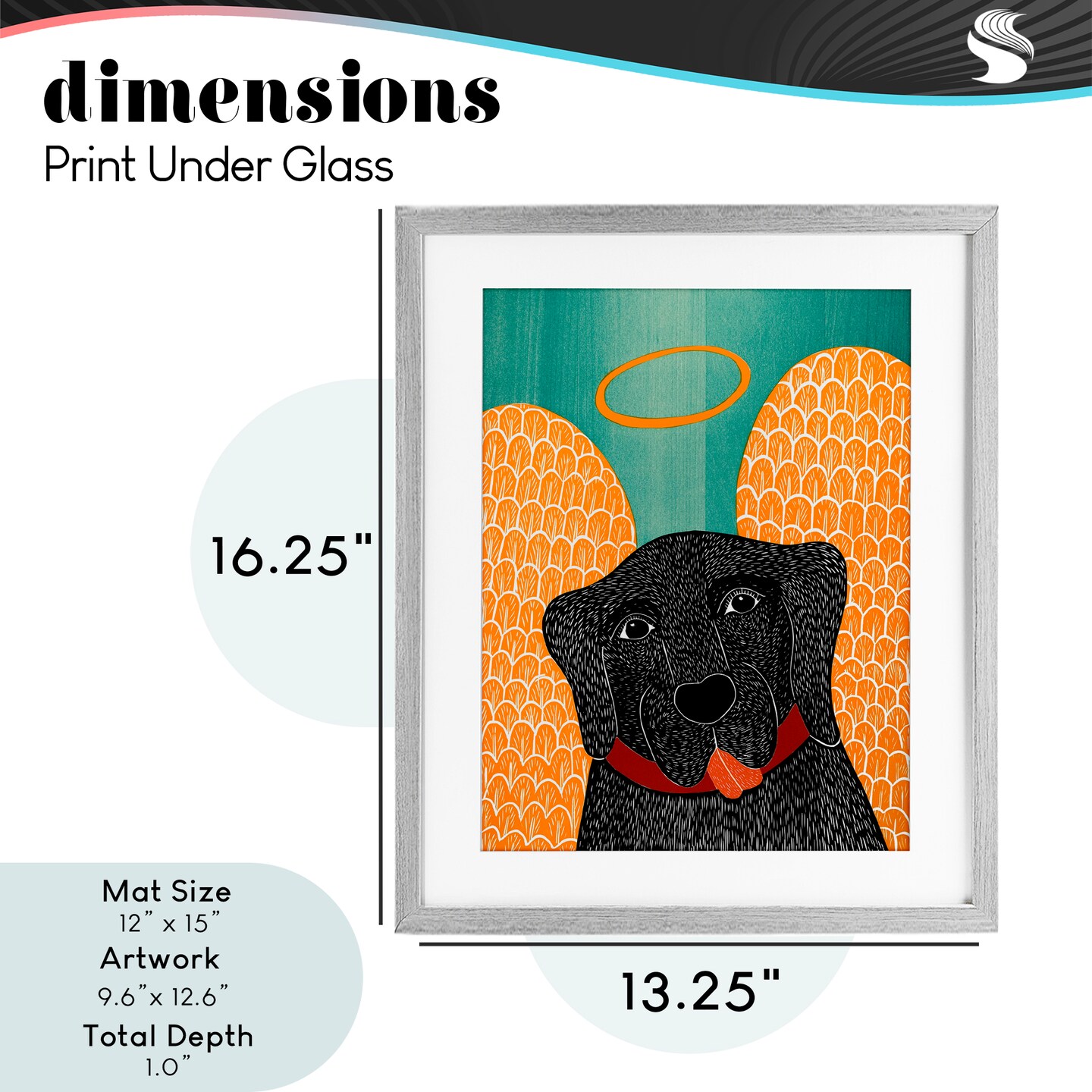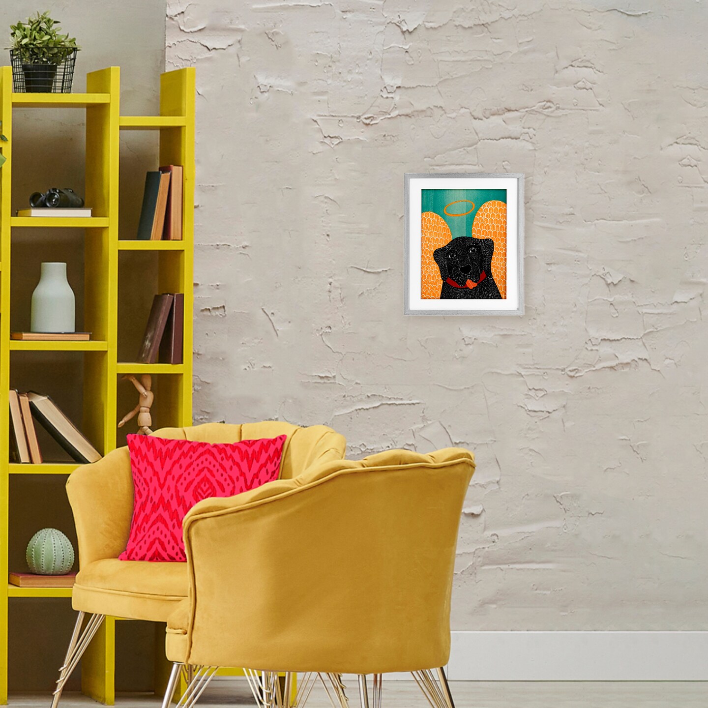 Stupell Industries Dog Angel with Yellow Wings Framed Print Under Glass, design by Stephen Huneck