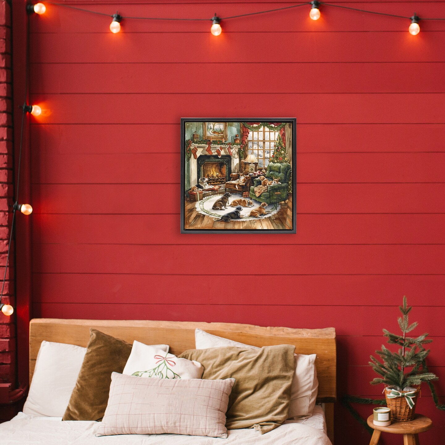 Stupell Industries Dogs Around Christmas Fireplace Floating Frame, design by LSR Design Studio
