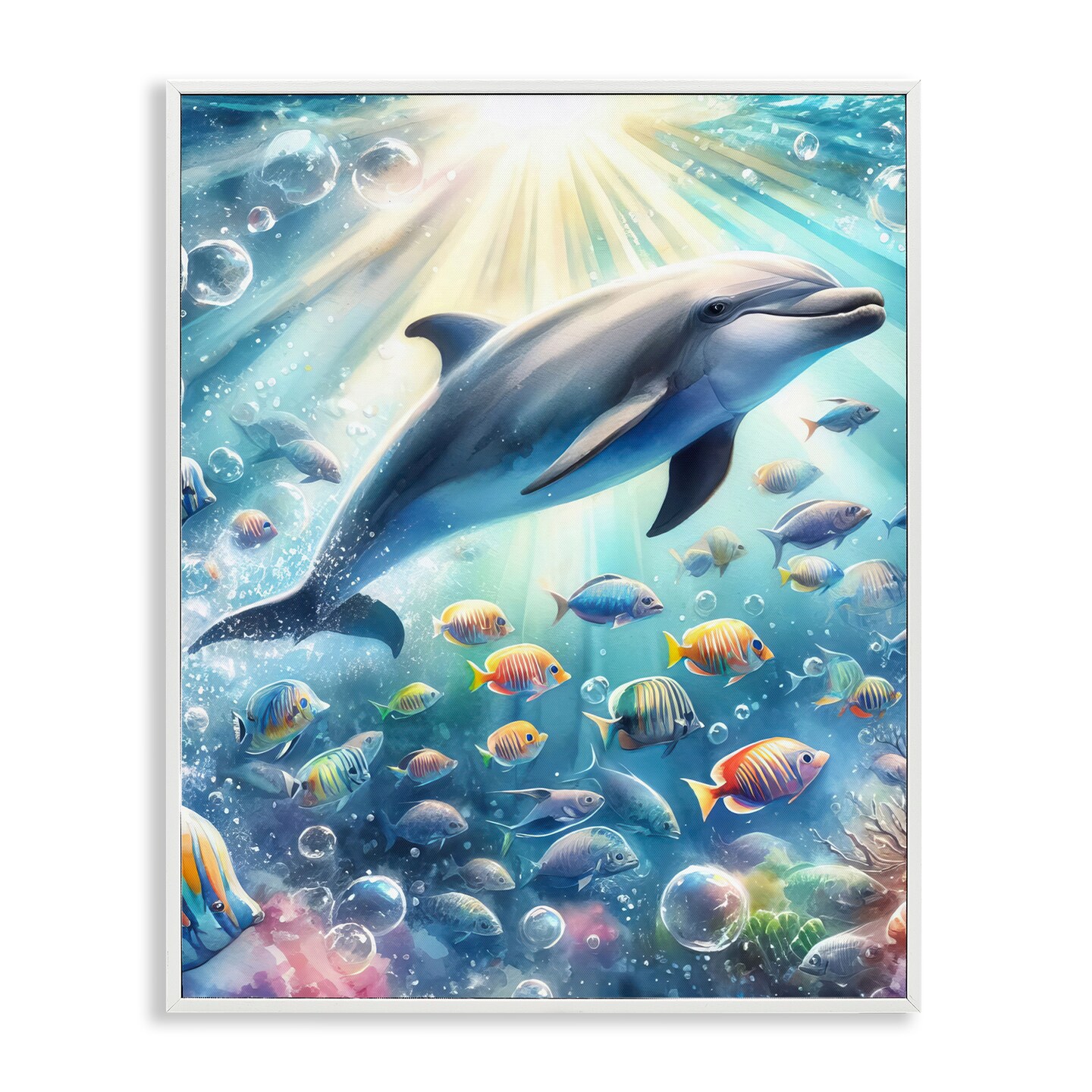 Stupell Industries Dolphin Among Sea Life Framed Giclee Wall Art Design by LSR Design Studio