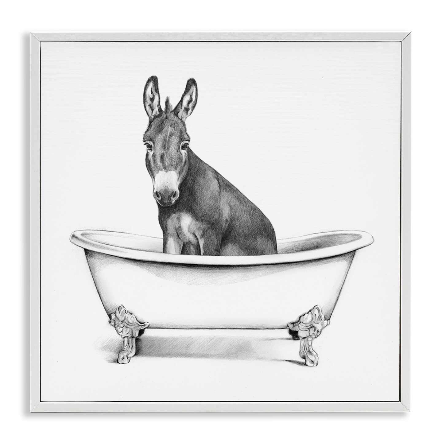 Stupell Industries Donkey in Bathtub Sketch Framed Giclee Art