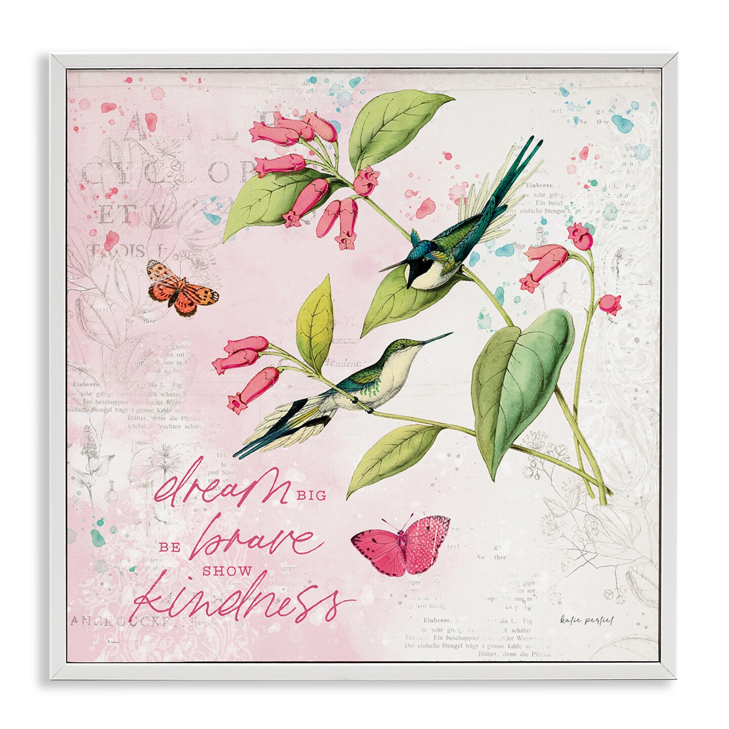 Stupell Industries Dream Big Birds & Florals Framed Giclee Wall Art Design by Katie Pertiet