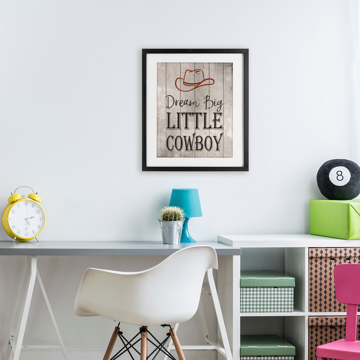 Stupell Industries Dream Big Little Cowboy Framed Print Under Glass, design by Christine Simpson Art