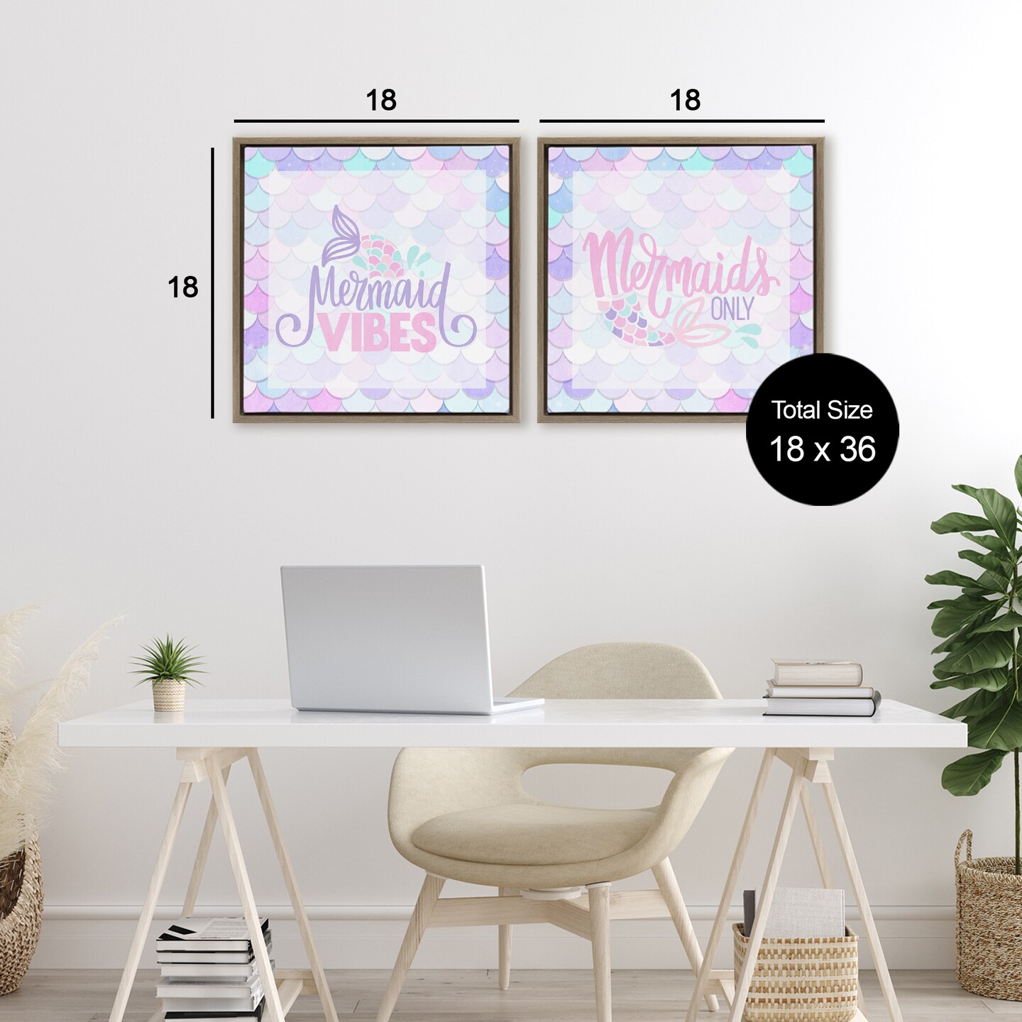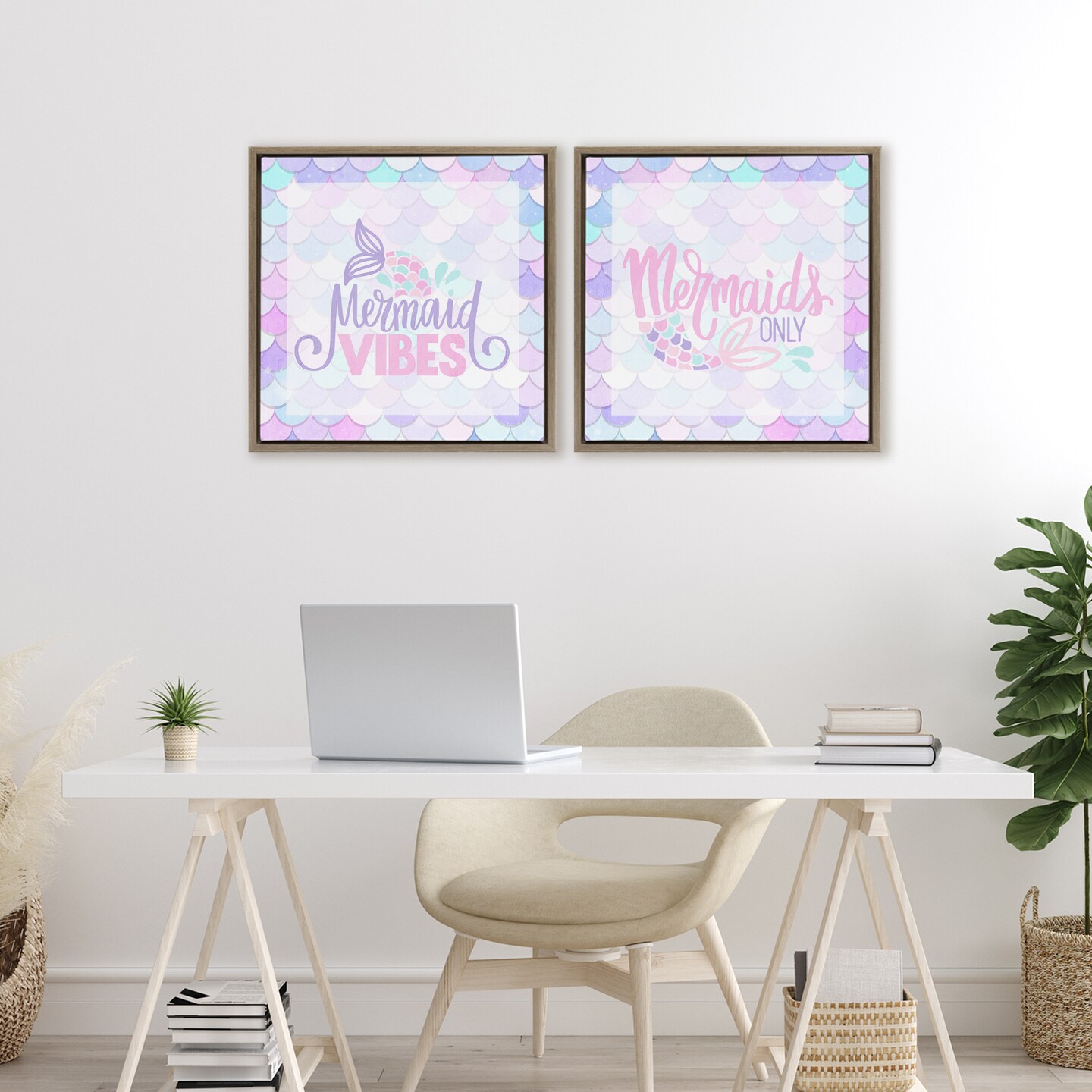 Stupell Industries Dreamy Mermaid Phrases with Scales 2pc Floating Frame Set, design by Kim Allen