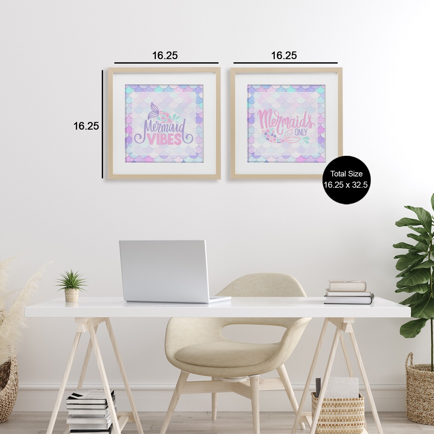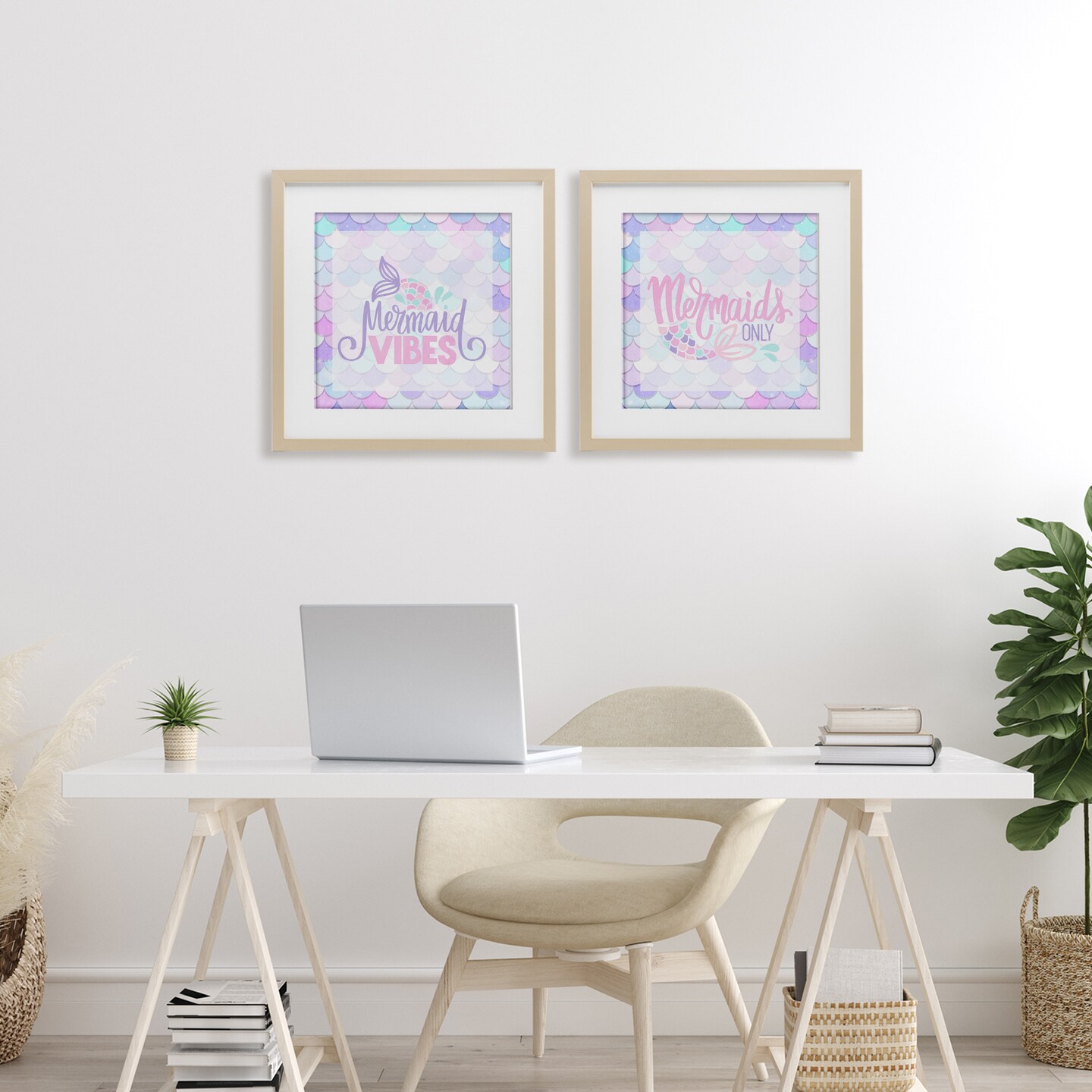 Stupell Industries Dreamy Mermaid Phrases with Scales 2pc Framed Print Under Glass Set, design by Kim Allen