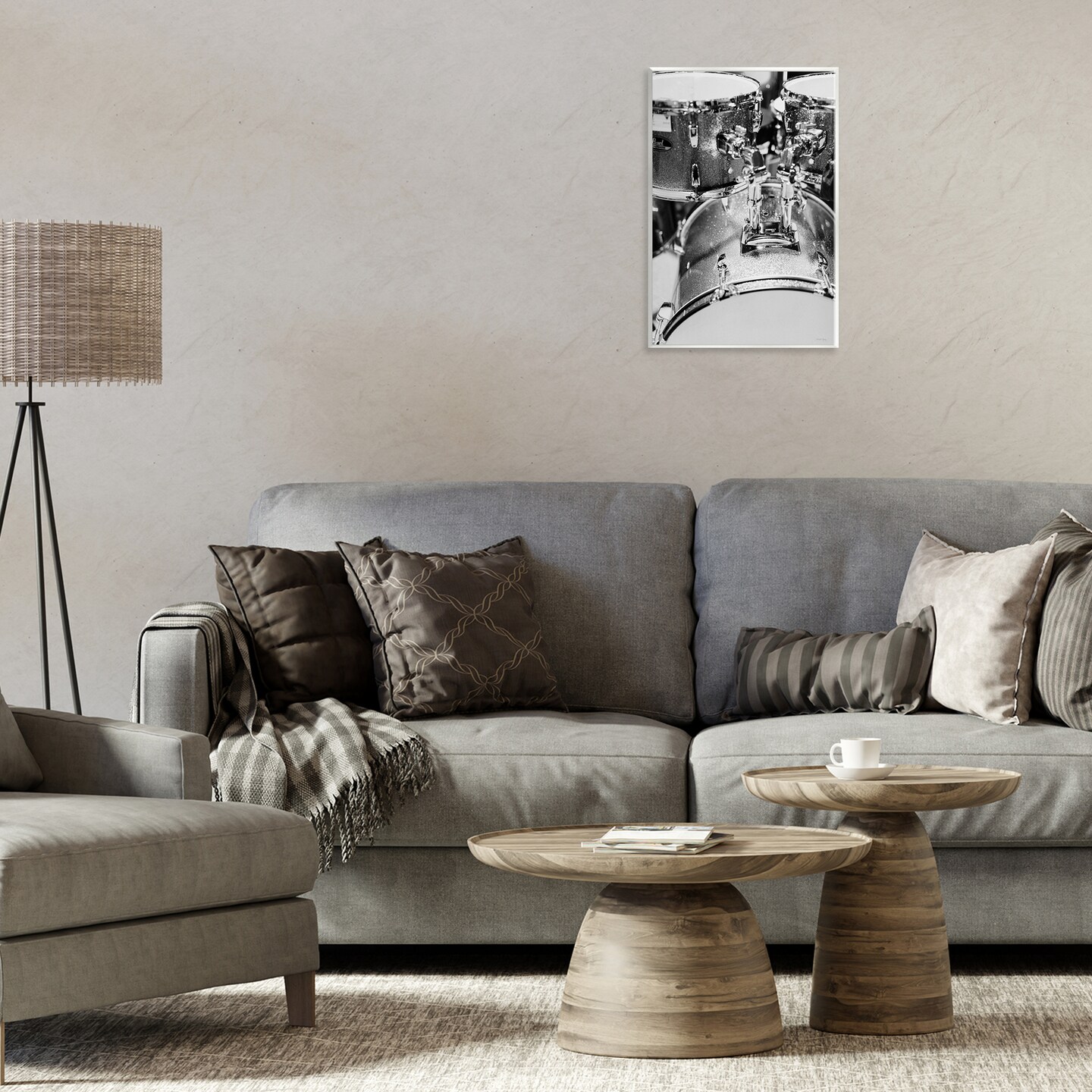 Stupell Industries Drum Set Black & White Wall Plaque Art Design by Jennifer Rigsby