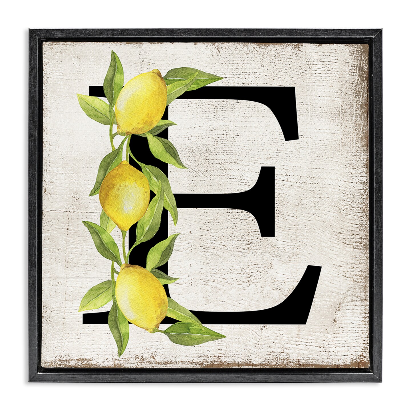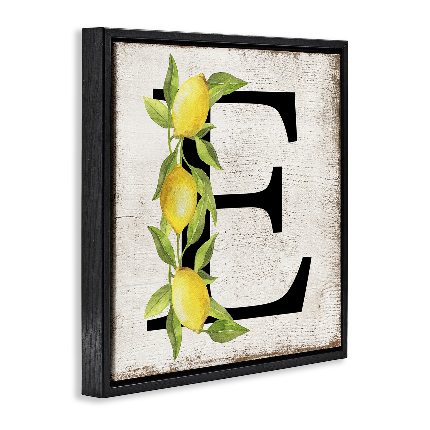Stupell Industries E with Lemon Letter Floater Framed Canvas Wall Art Design by Creatif Belle