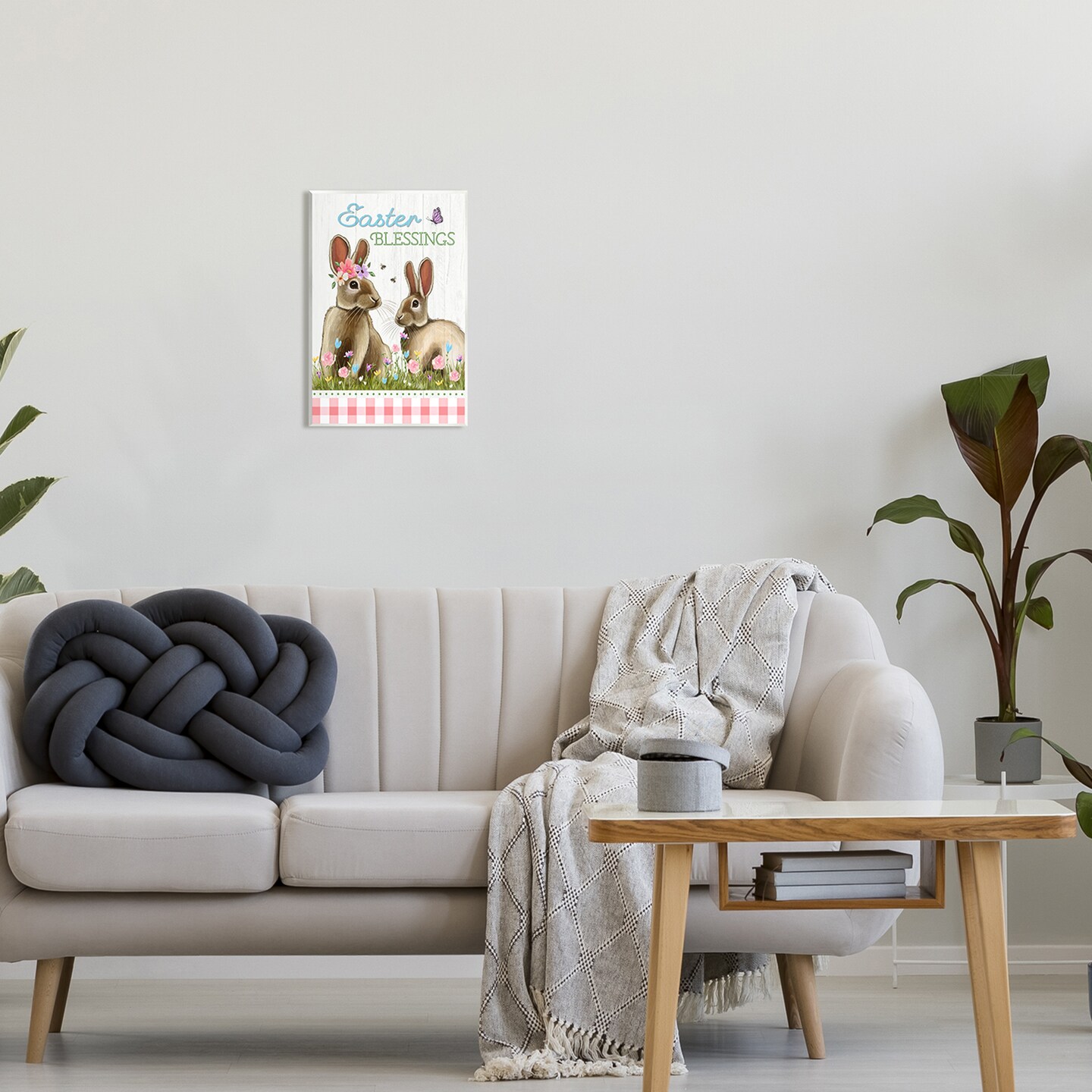 Stupell Industries Easter Blessings Gingham Bunnies Wall Plaque Art