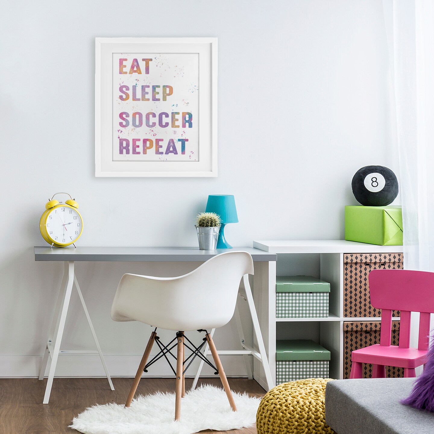 Stupell Industries Eat Sleep Soccer Life Pastel Black Framed Print Under Glass, design by Marcus Prime