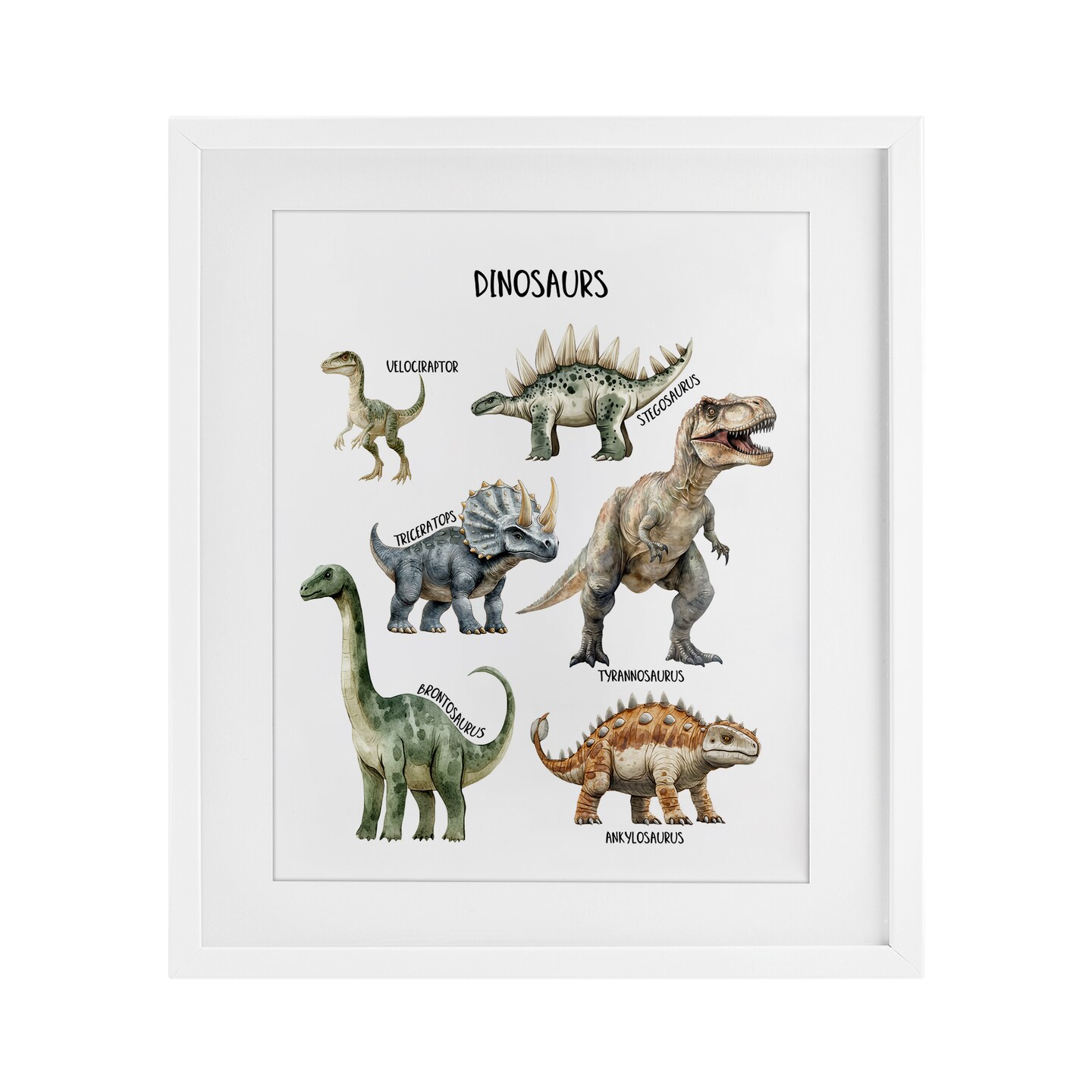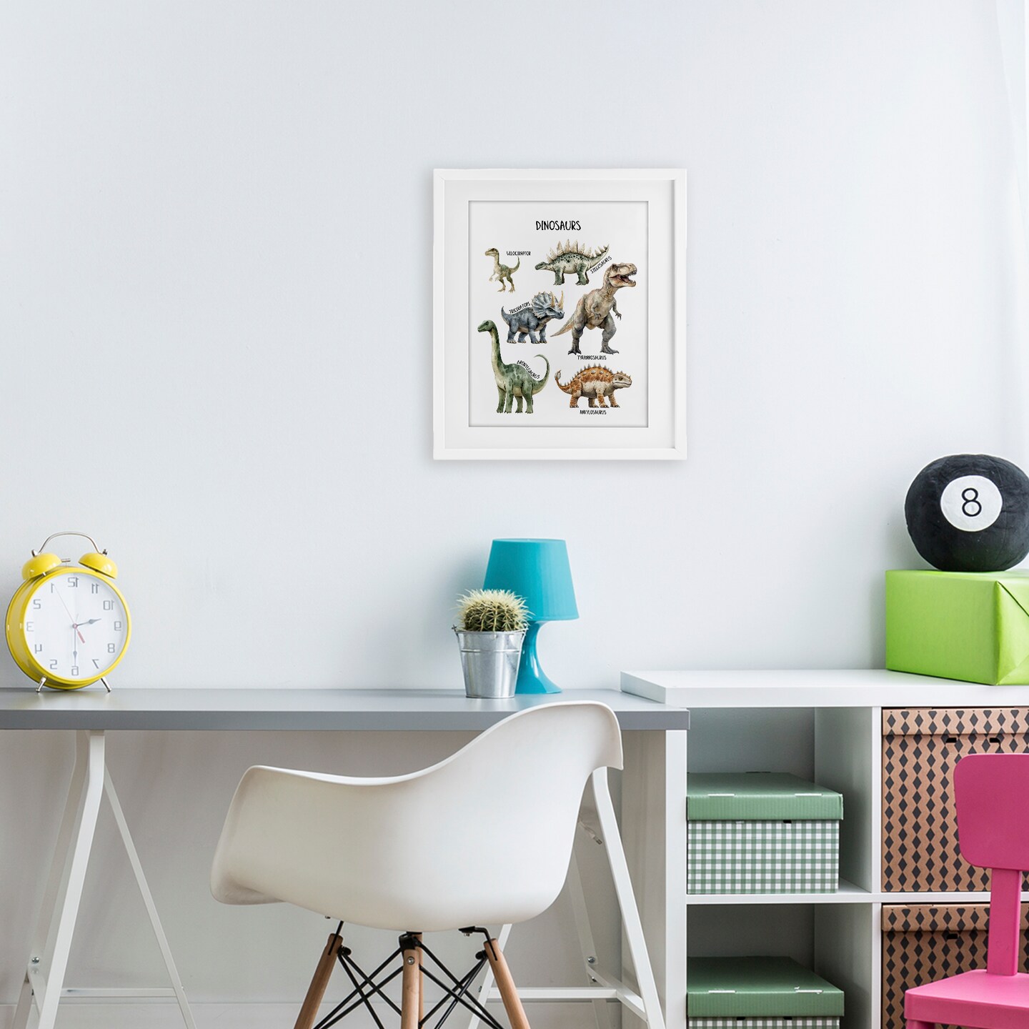 Stupell Industries Educational Meet The Dinosaurs Framed Print Under Glass, design by Christine Simpson Art
