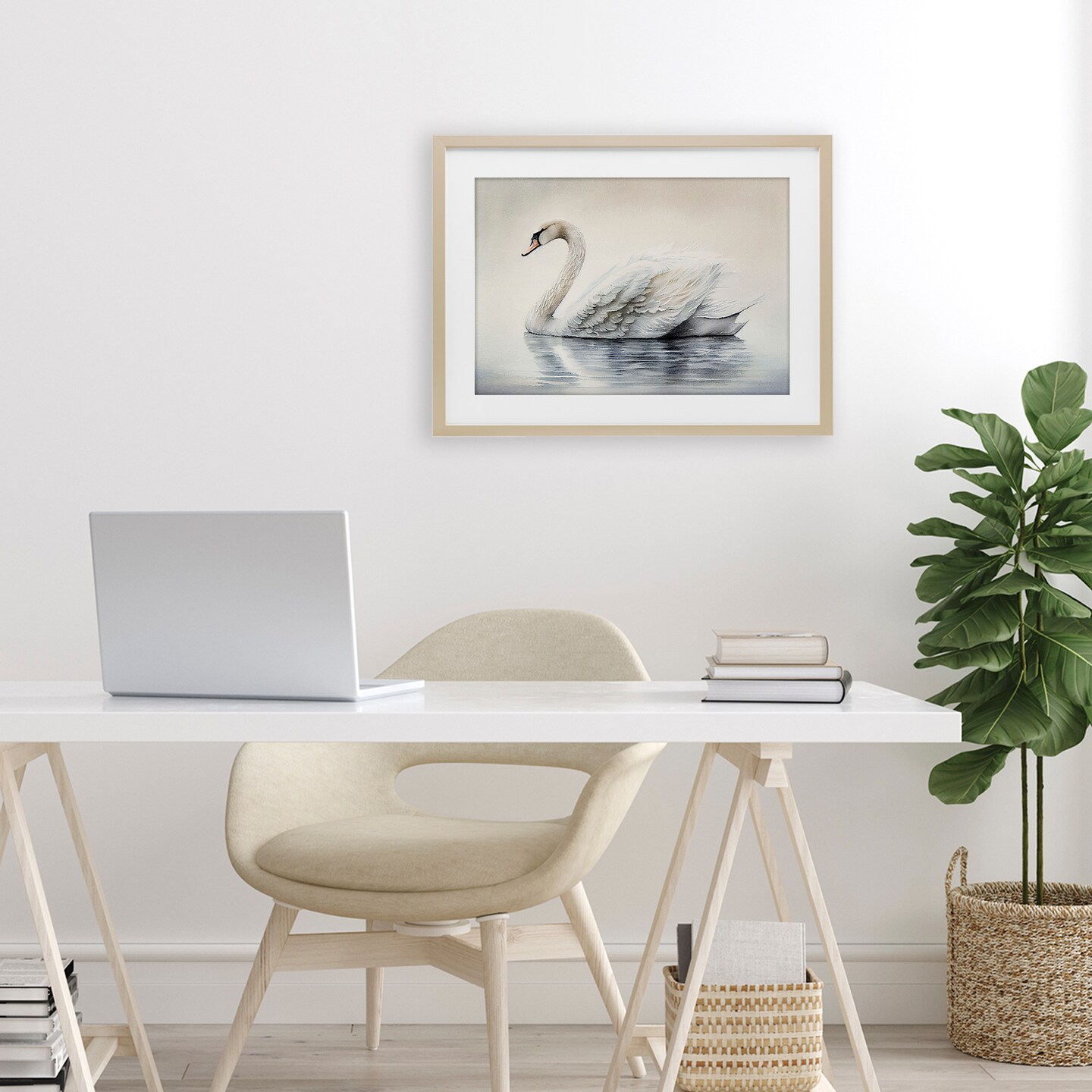 Stupell Industries Elegant Floating Swan Framed Print Under Glass, design by Sasha