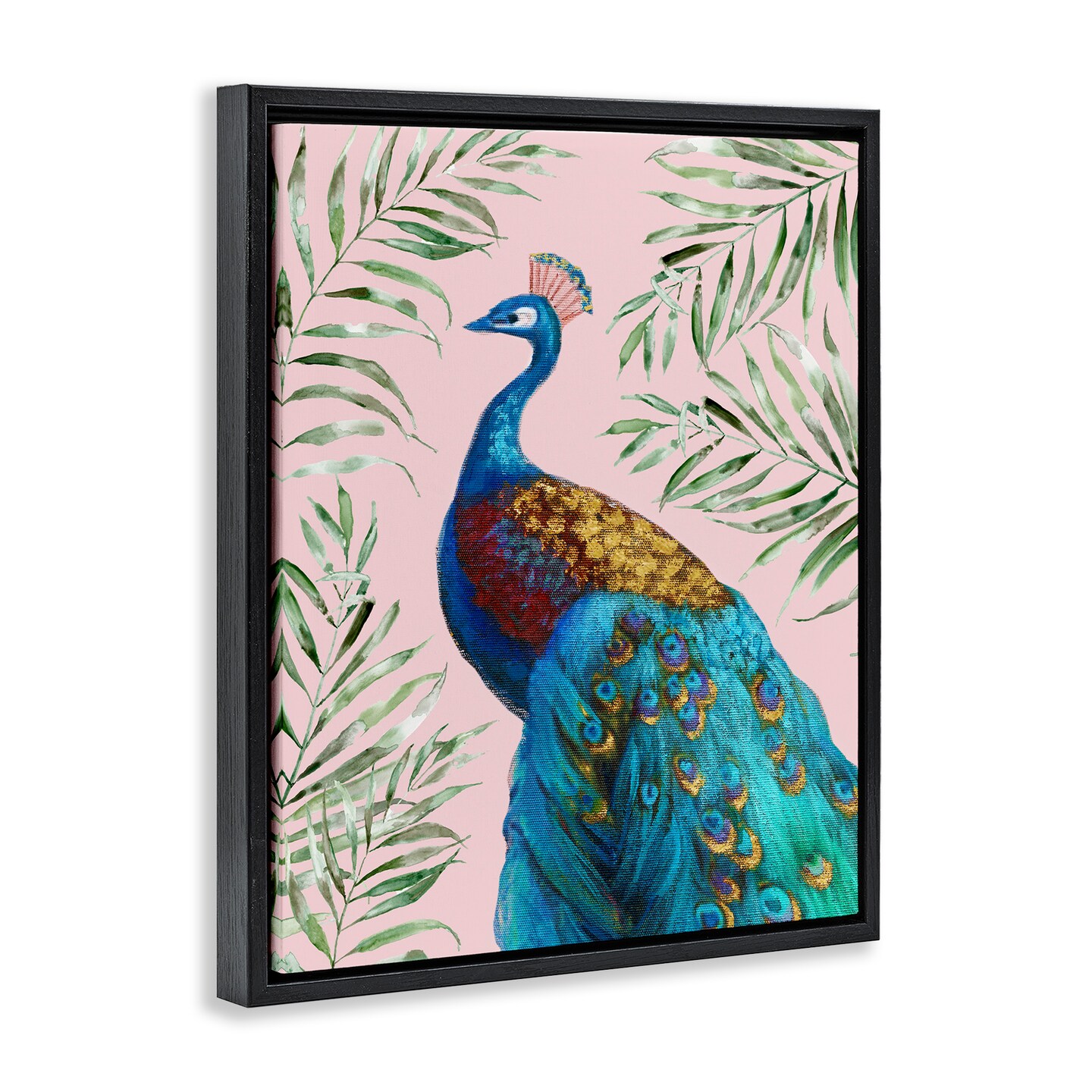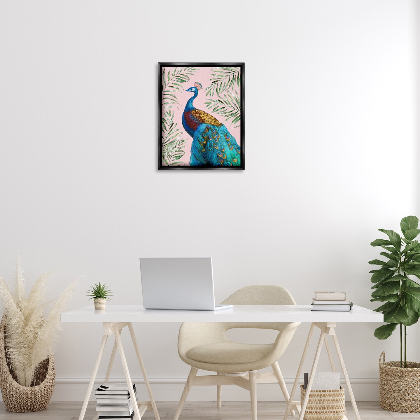 Stupell Industries Elegant Peacock & Palm Sprigs Floating Frame Design by Nan