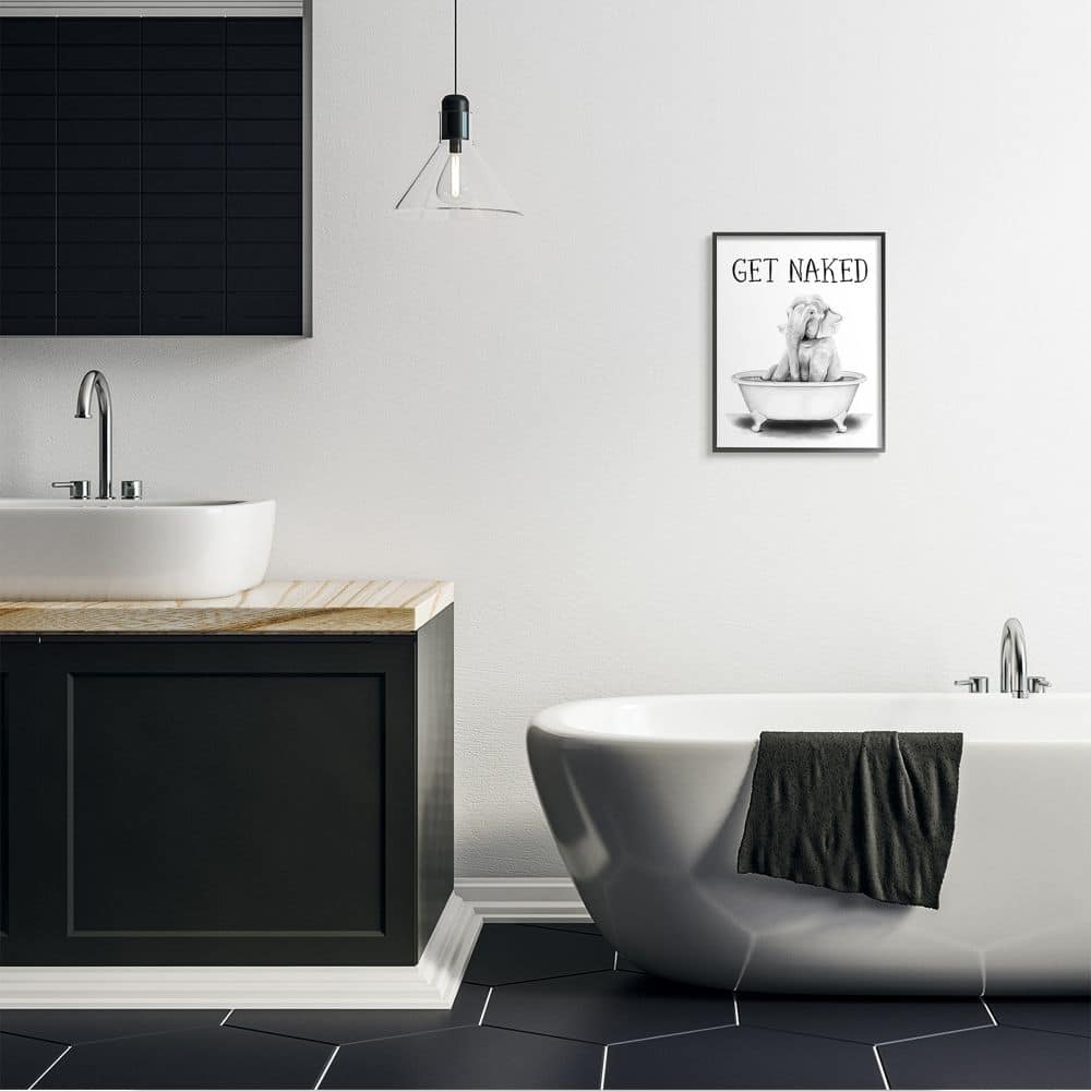 Stupell Industries Elephant Bathroom Humor Get Naked Phrase Animal Tub Framed Wall Art