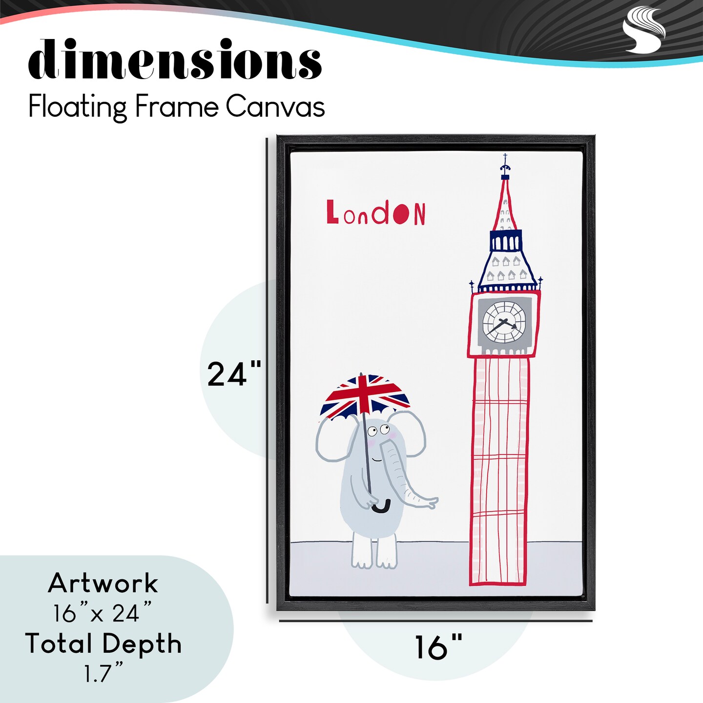 Stupell Industries Elephant & Big Ben London Floating Frame, design by Carla Daly