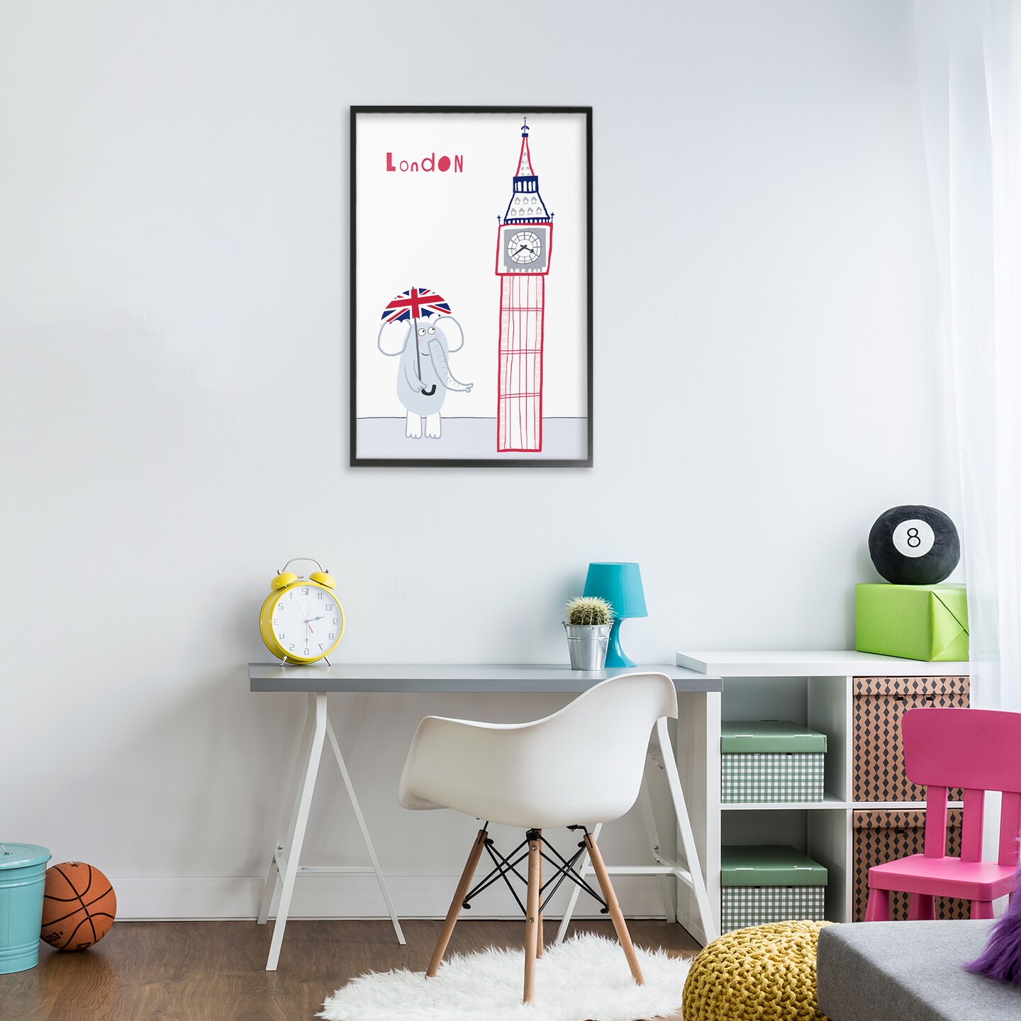 Stupell Industries Elephant & Big Ben London Framed Giclee, design by Carla Daly