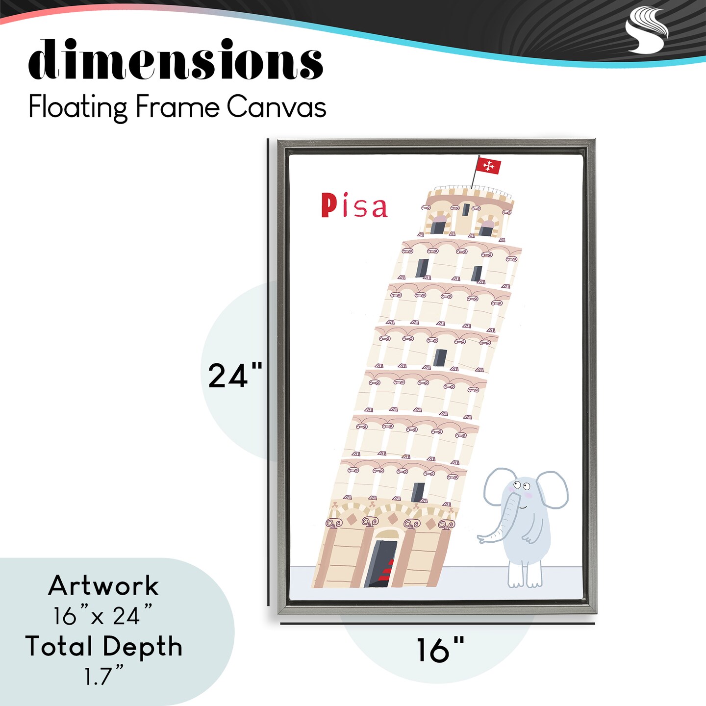 Stupell Industries Elephant & Leaning Tower Pisa Floating Frame, design by Carla Daly