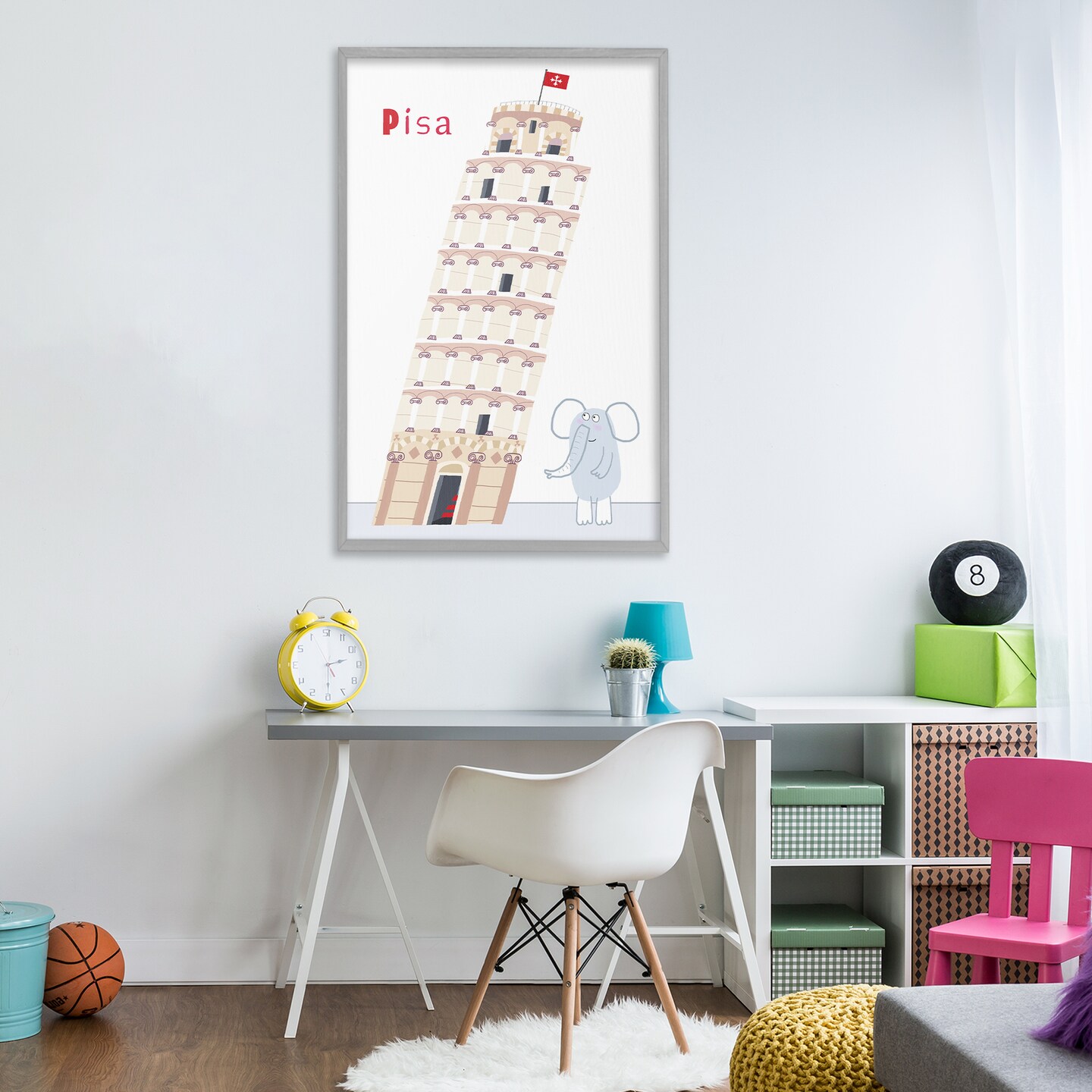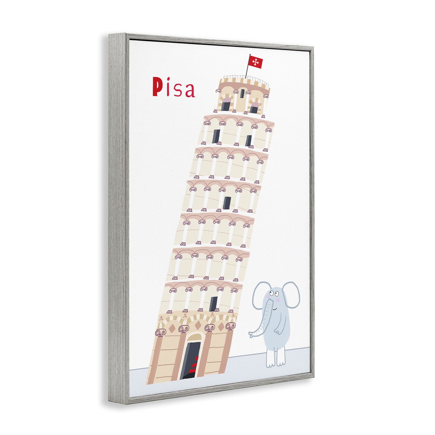 Stupell Industries Elephant & Leaning Tower Pisa Framed Giclee, design by Carla Daly