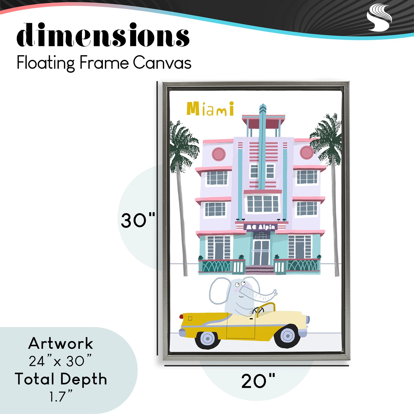 Stupell Industries Elephant & Miami Hotel Floating Frame, design by Carla Daly