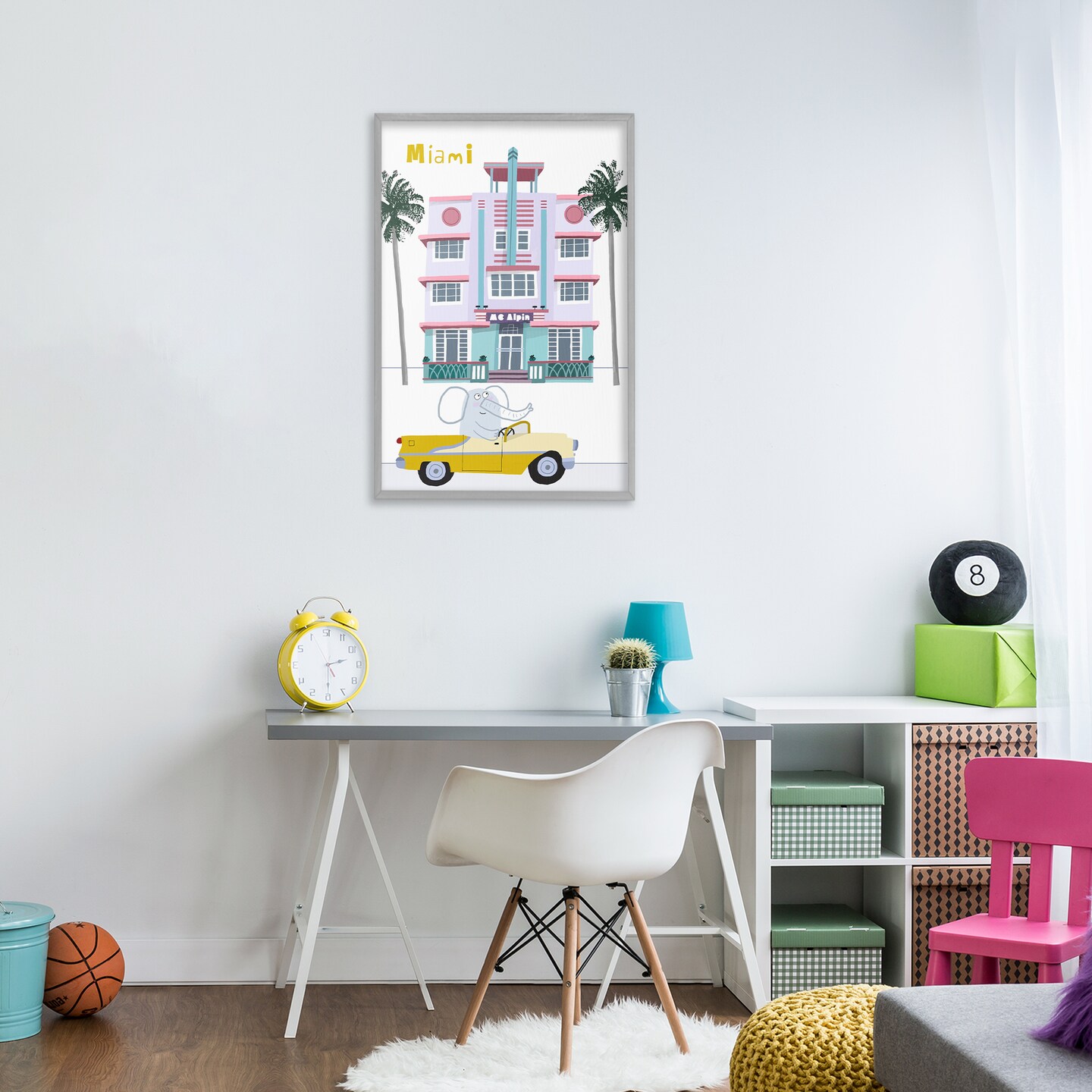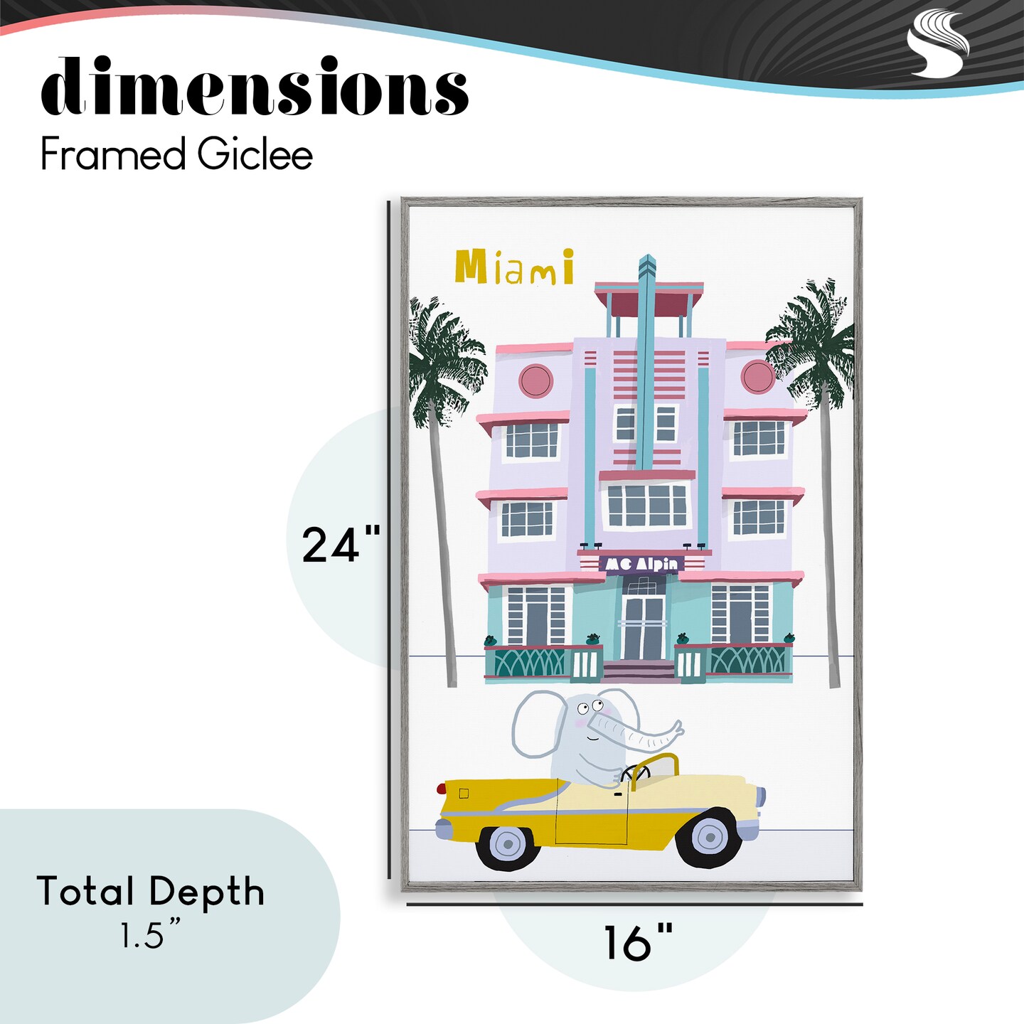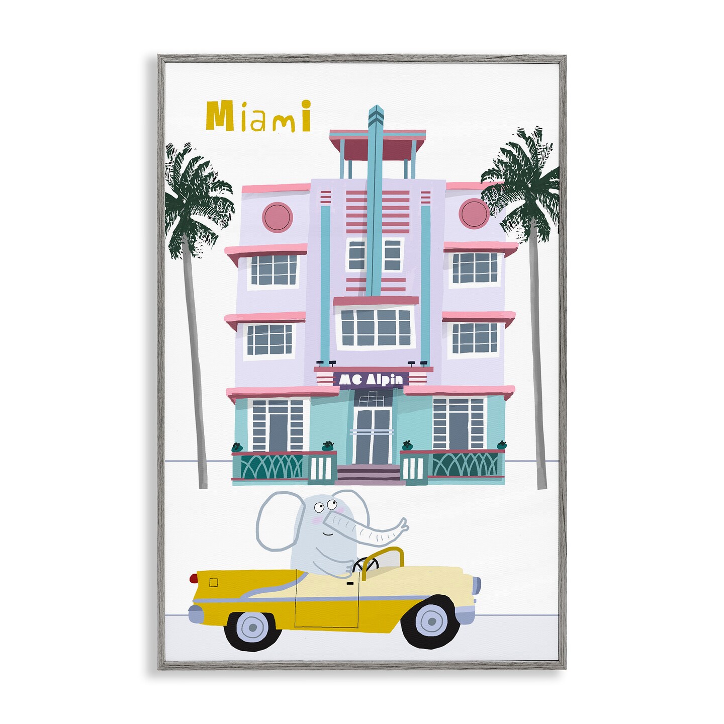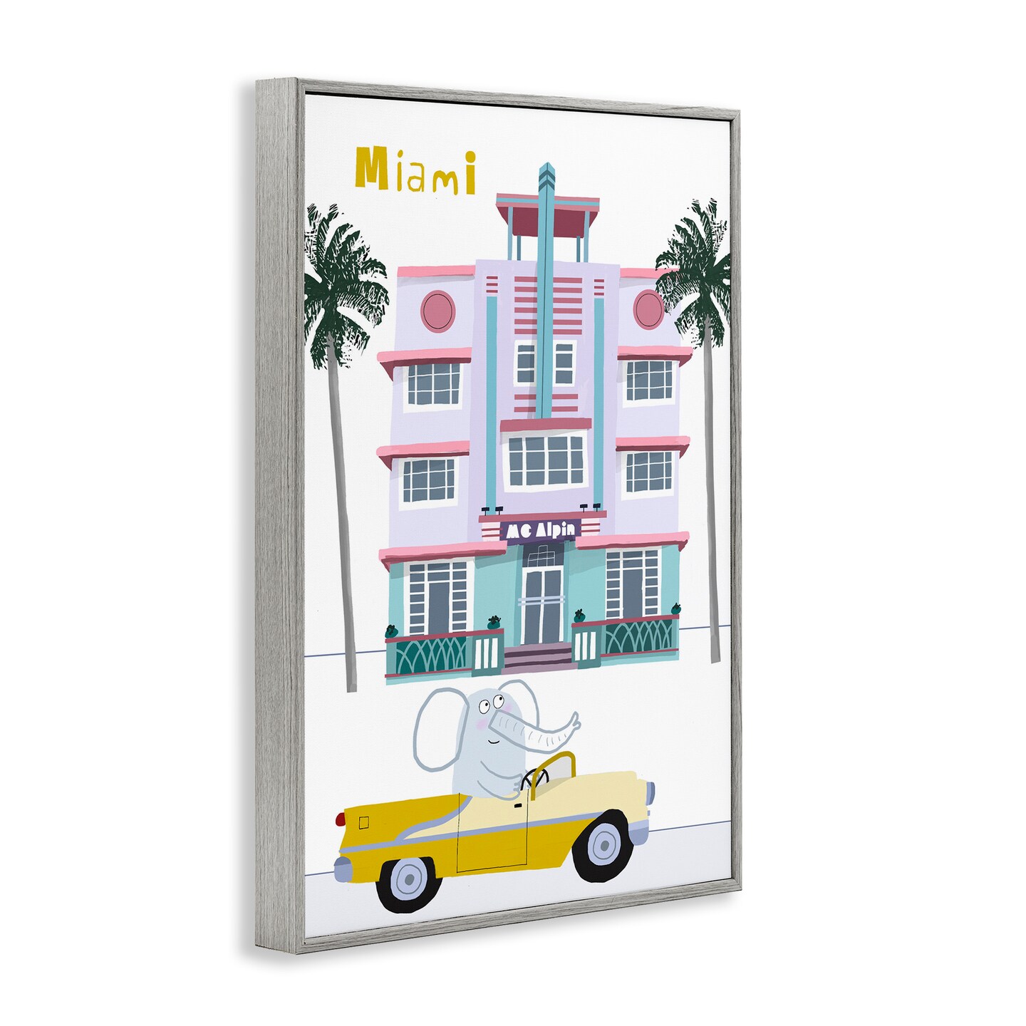 Stupell Industries Elephant & Miami Hotel Framed Giclee, design by Carla Daly