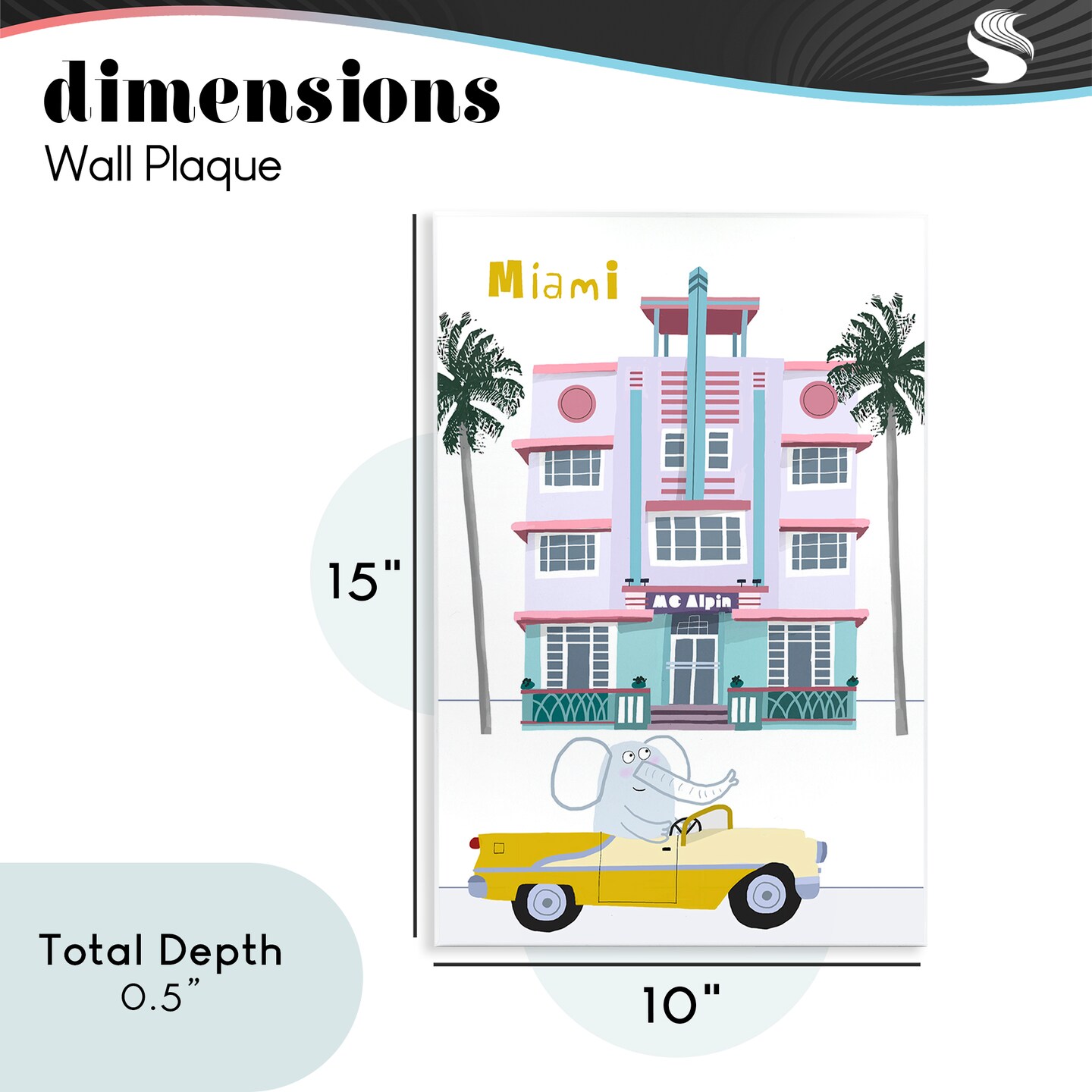 Stupell Industries Elephant & Miami Hotel Wall Plaque, design by Carla Daly