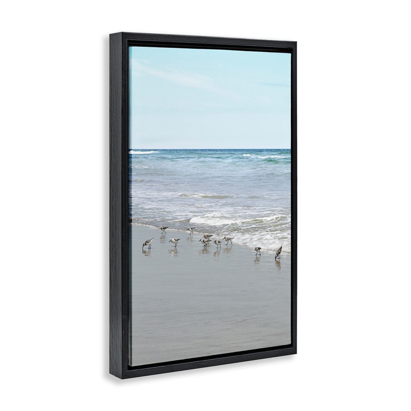 Stupell Industries Energetic Beach Birds Floater Framed Canvas Wall Art Design by Natalie Carpentieri