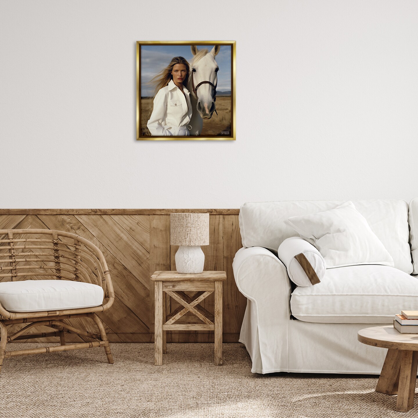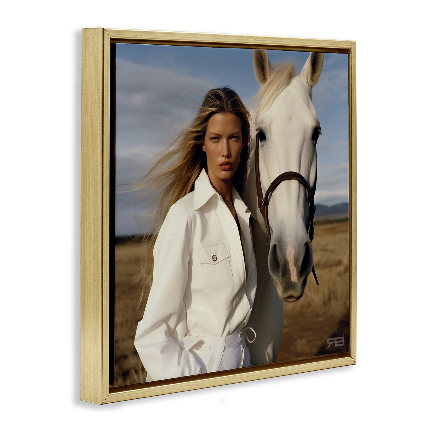 Stupell Industries Equestrian Girl & White Horse Framed Floater Canvas Wall Art Design by RB