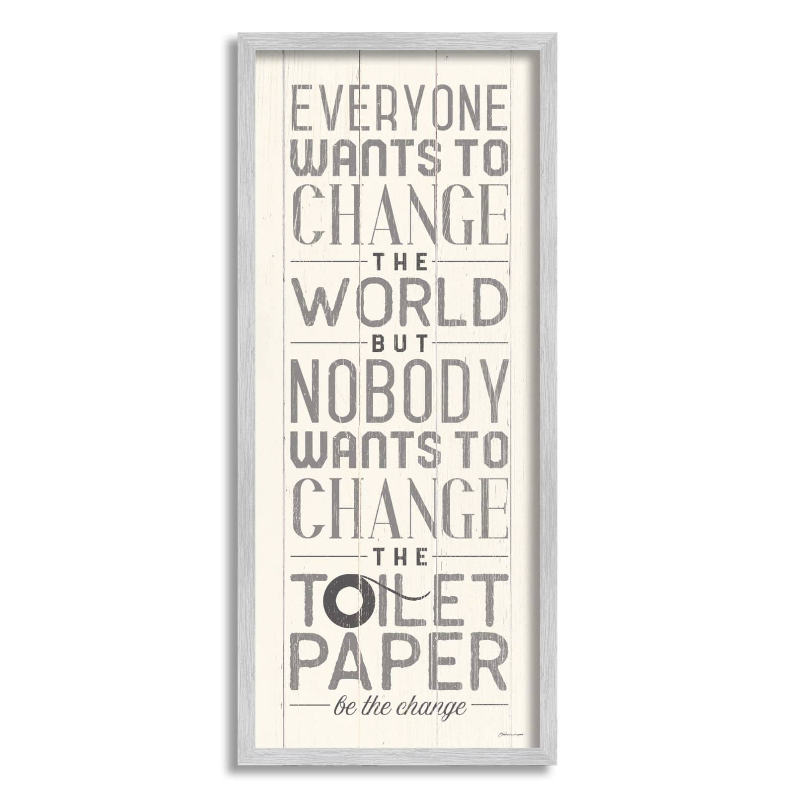 Stupell Industries Everyone Wants To Change The World White Planked Look Typography Framed Wall Art