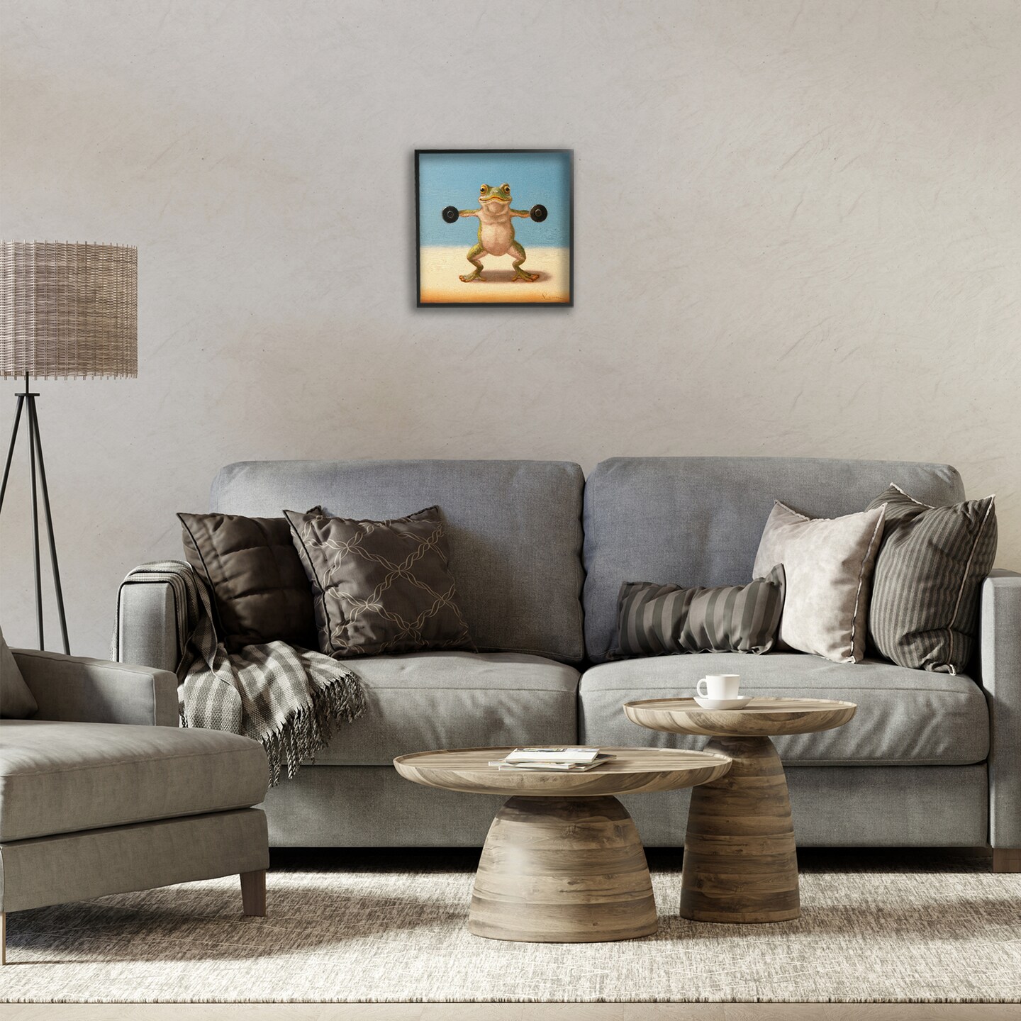 Stupell Industries Exercise Weights Frog Framed Giclee Design by Lucia Heffernan