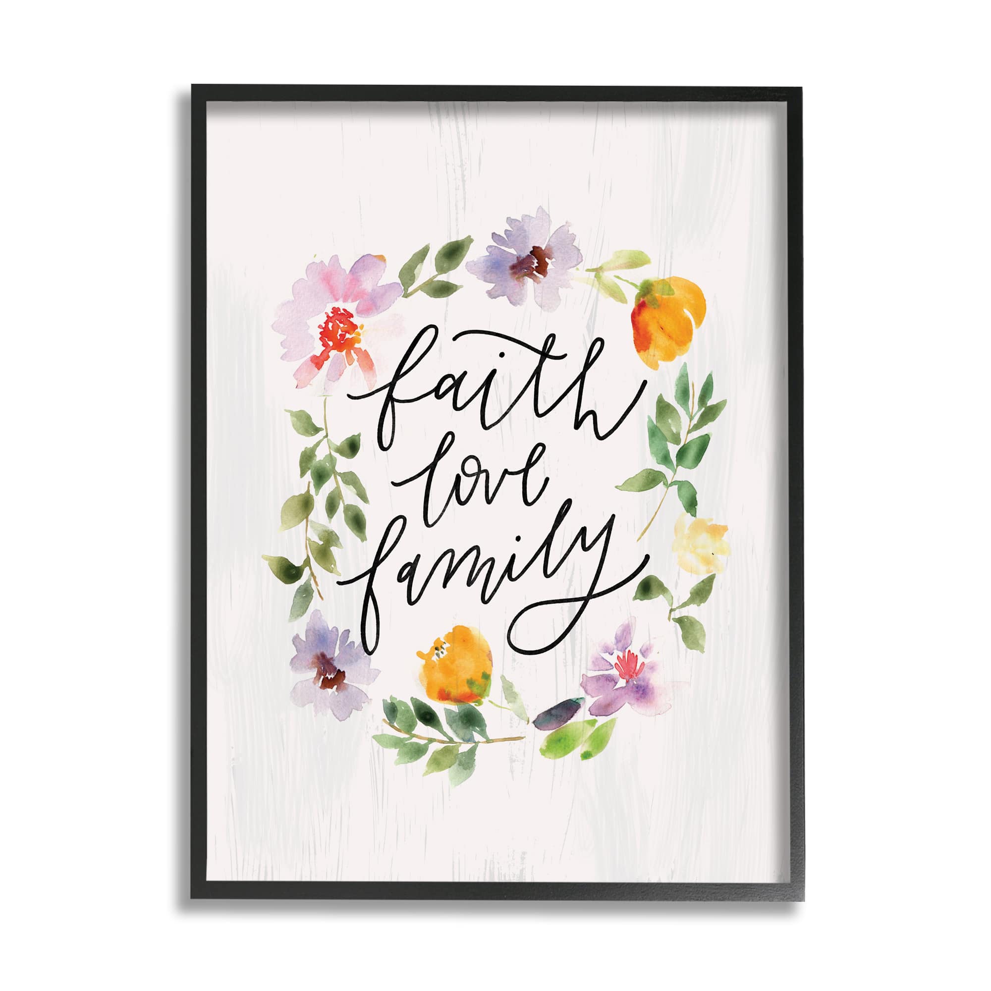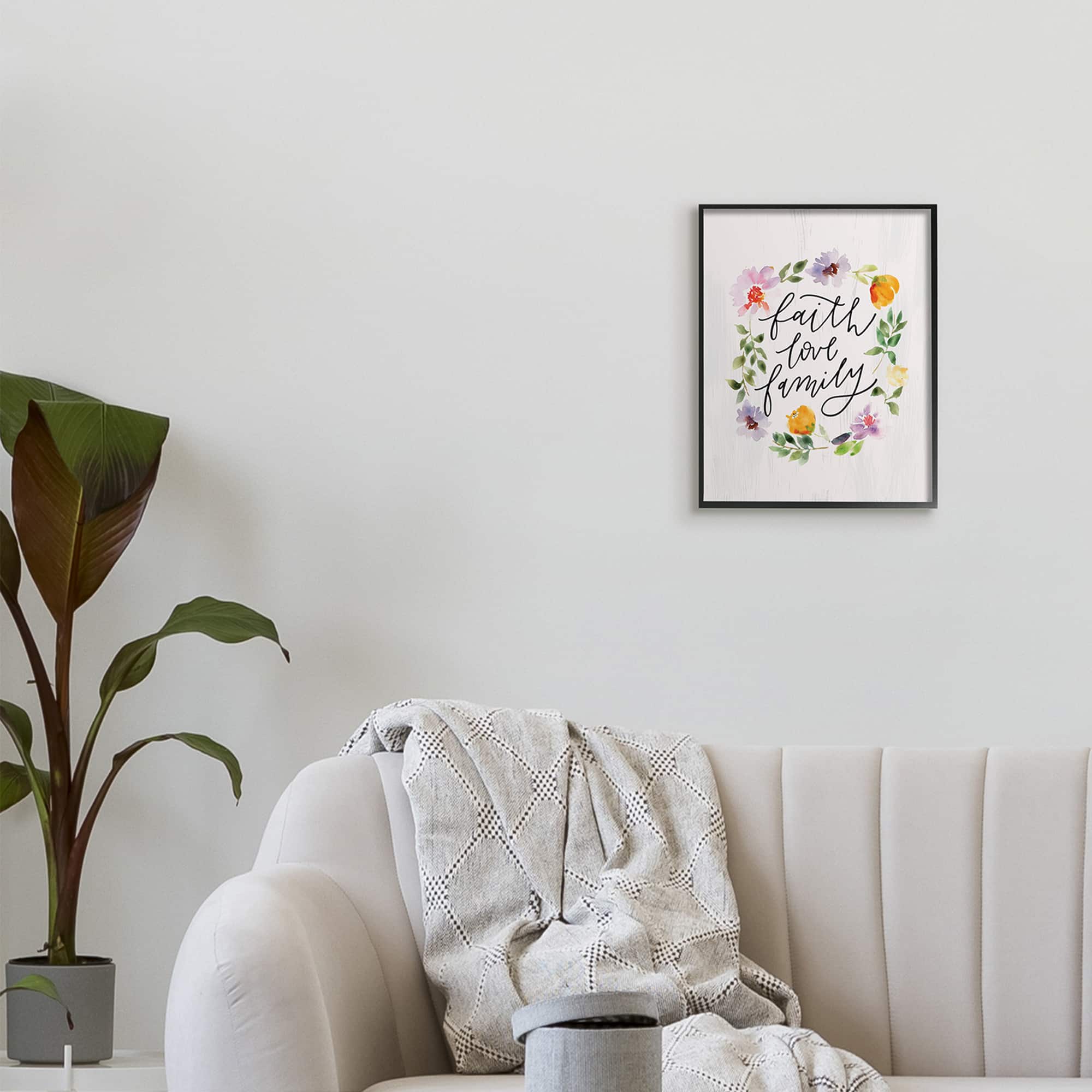 Stupell Industries Faith Love Family Quote Traditional Floral Wreath in Black Frame Wall Art