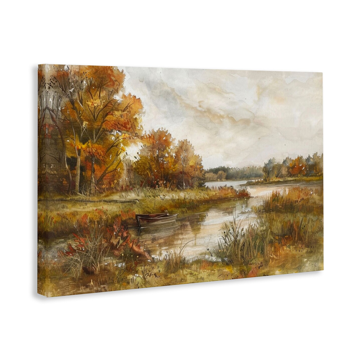 Stupell Industries Fall Scenic River Boat Canvas Wall Art Design by LSR Design Studio