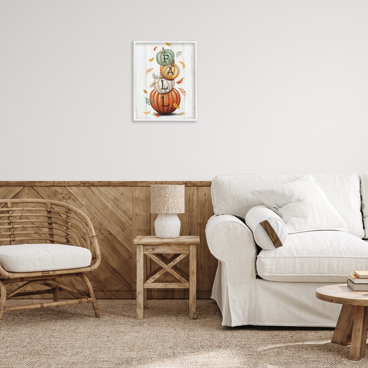 Stupell Industries Falling Leaves & Pumpkin Stack Framed Giclee Design by Elizabeth Tyndall